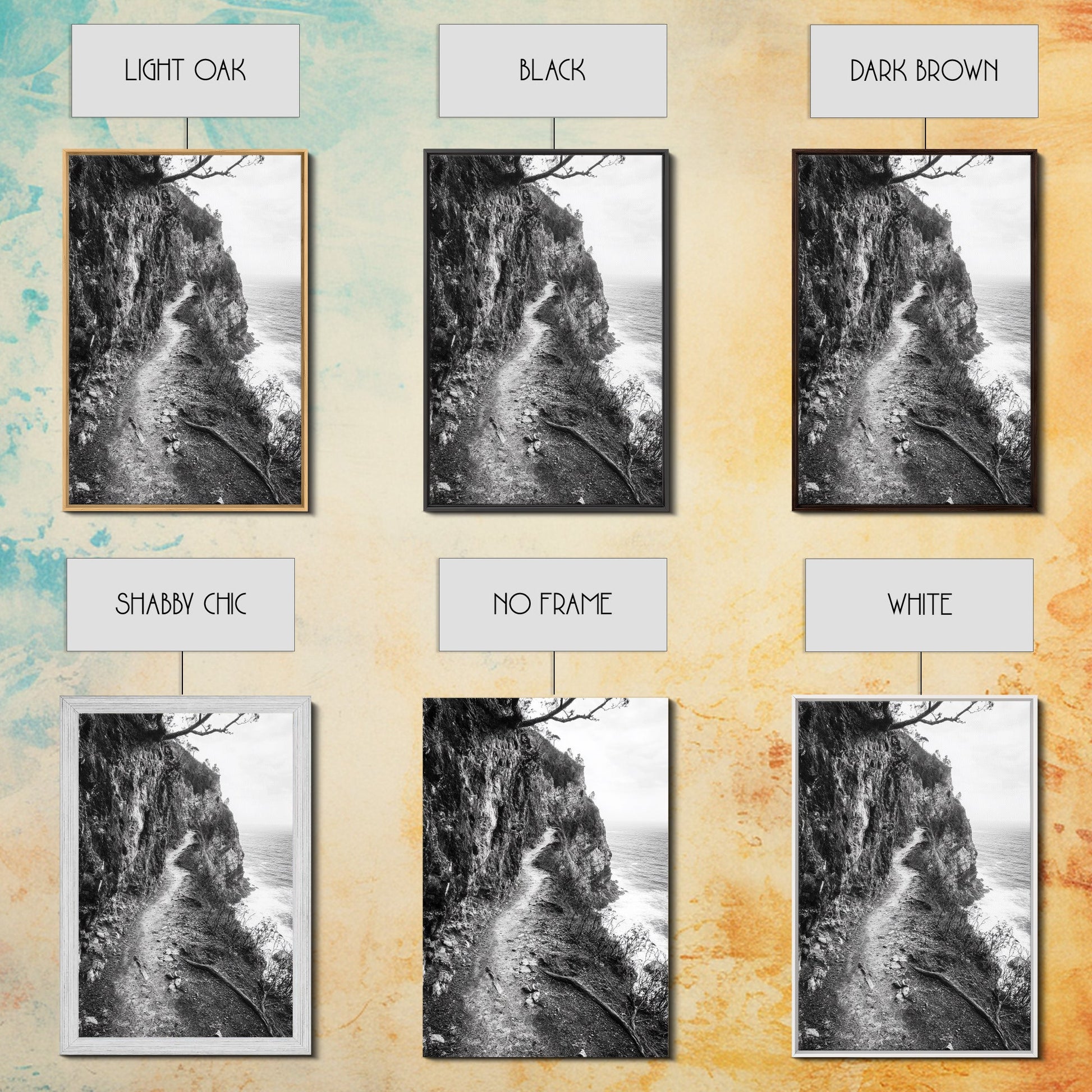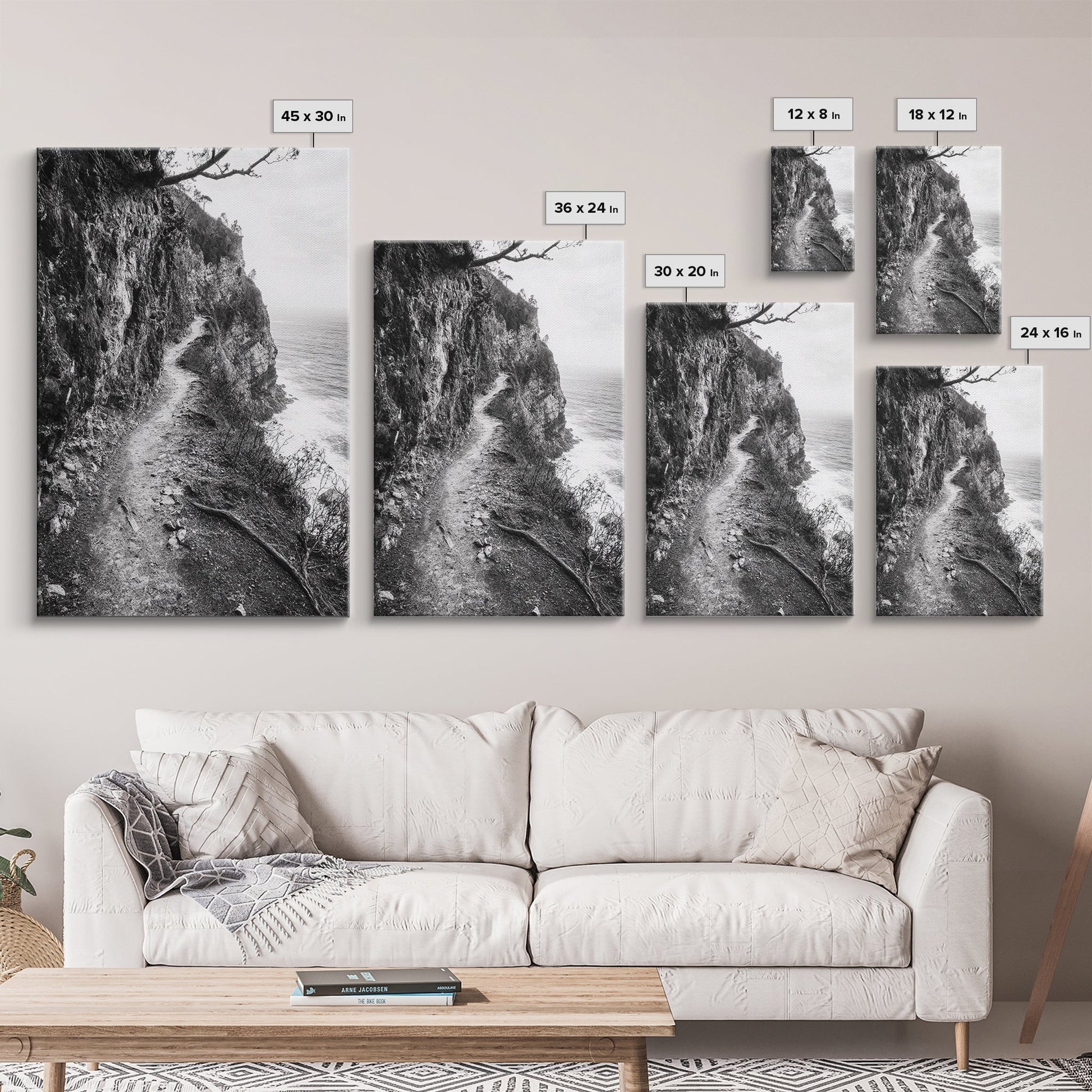 Cliffside Trail, Seaside Path, Coastal Adventure, Outdoor Photography, Framed Canvas Print, Cabin Nature Lover Wall Art, Bedroom Wall Art