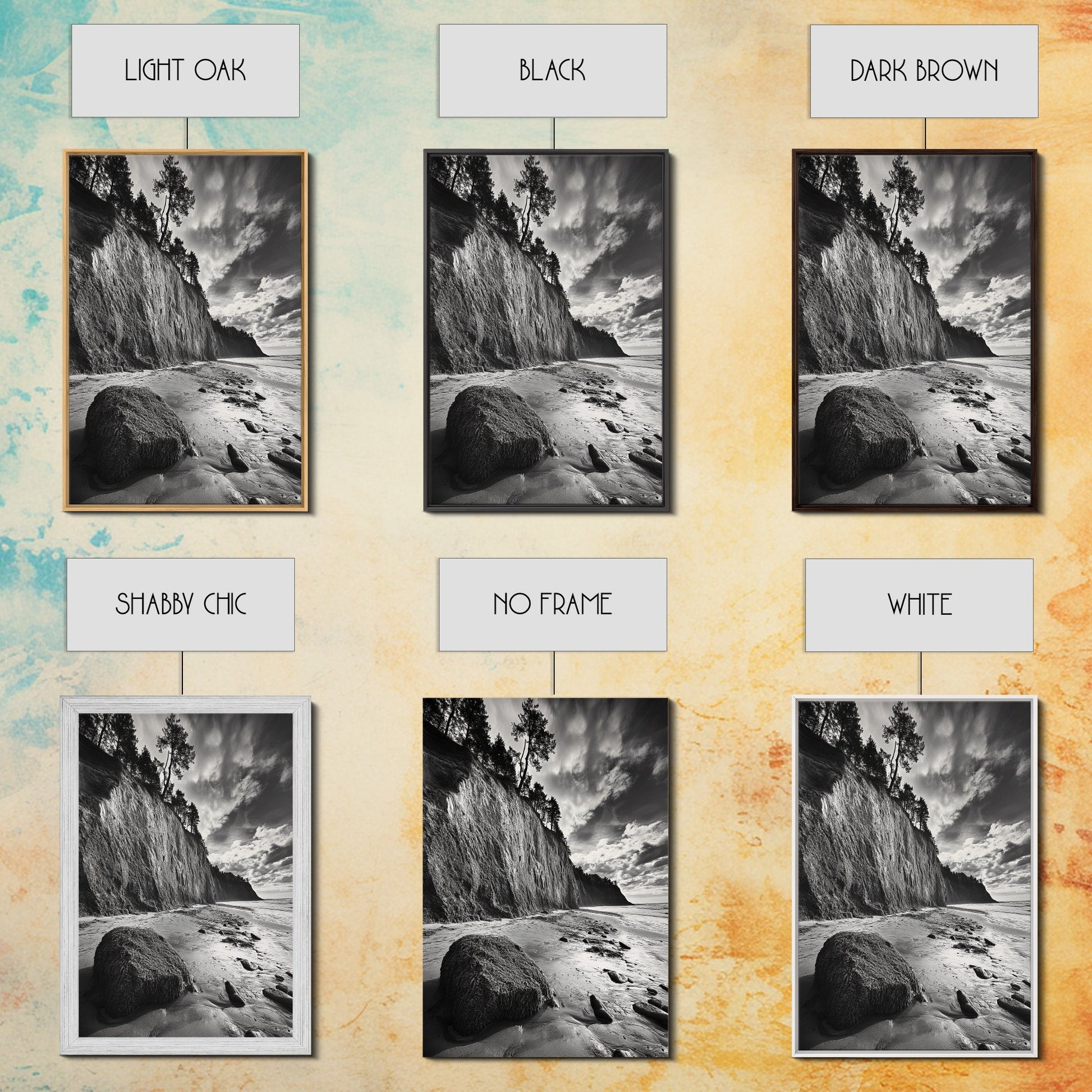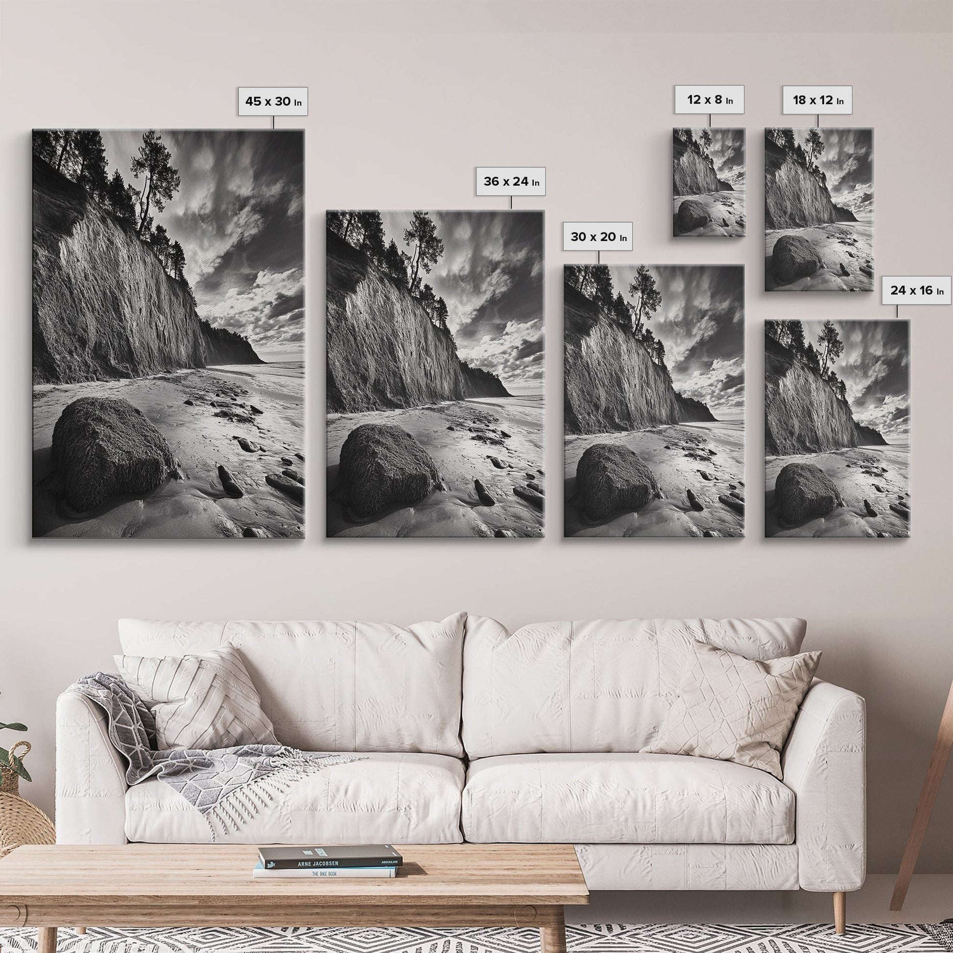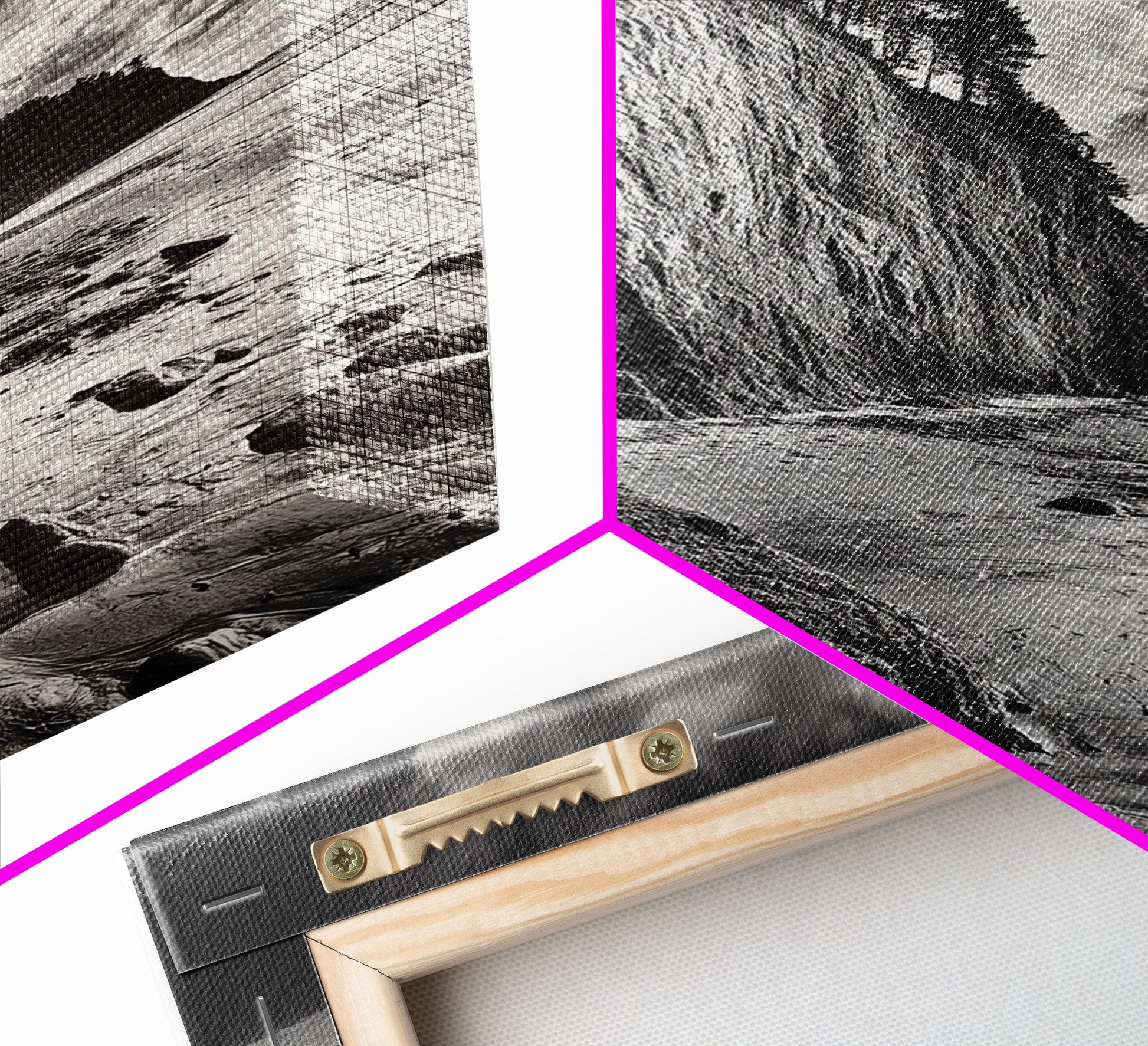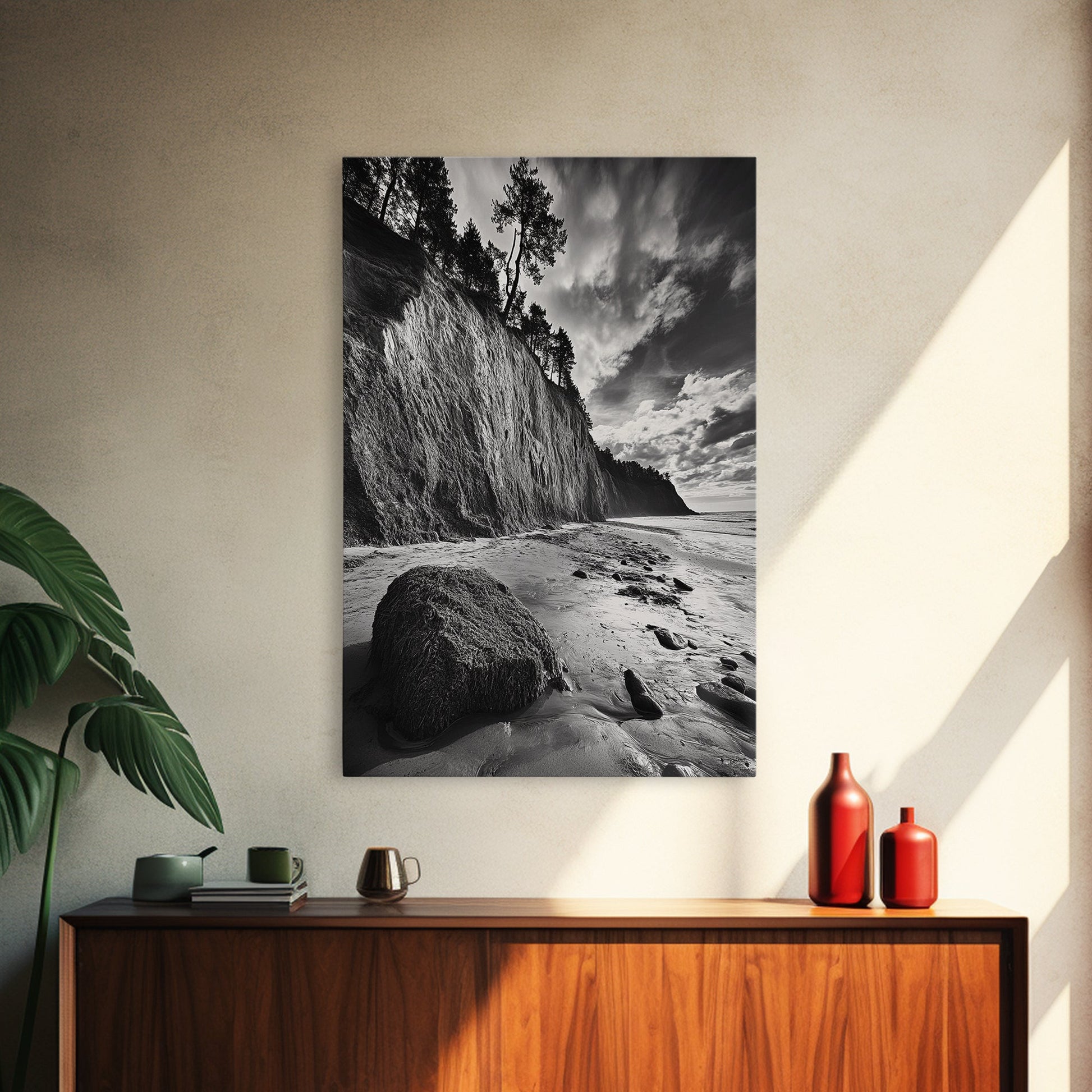 Cliffside Trees, Coastal Horizon, Rugged Seashore, Pacific Northwest Print, Framed Canvas Print, Fall Nature Wall Art, Den Decor