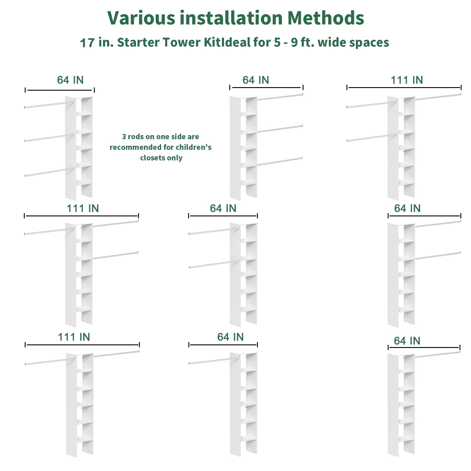 Closet System Starter Kit with Tower and 3 Hang Rods