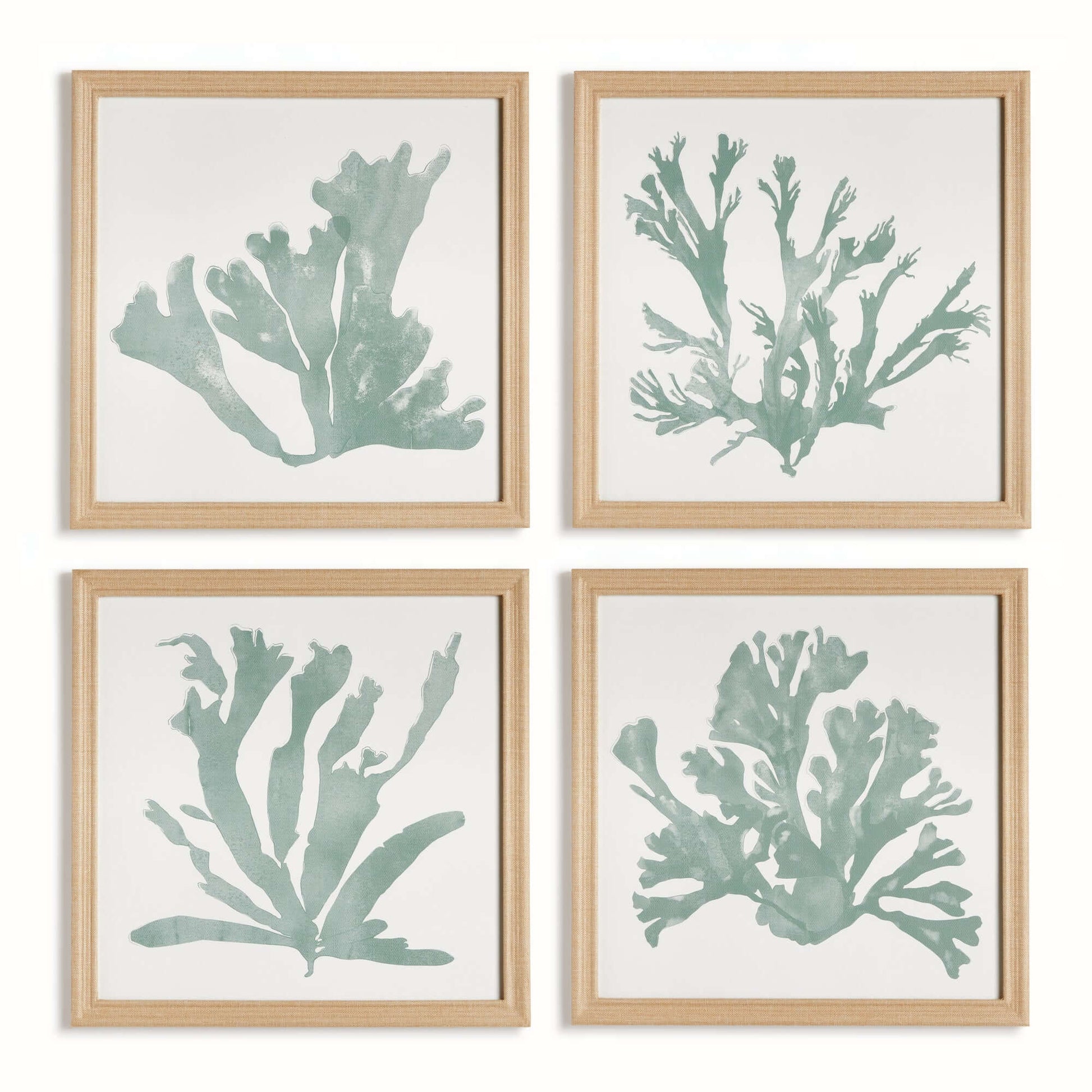 Coastal Framed Coral Silhouette Prints in Natural Wood Frames (Set of 4)