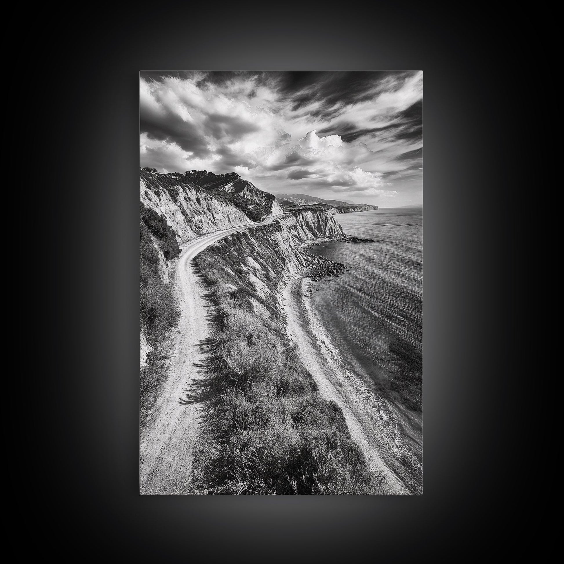 Coastal Mountain Trail, Ocean View, Travel Photography, Framed Canvas Print, Scenic Landscape Art, Office or Hallway Wall Art