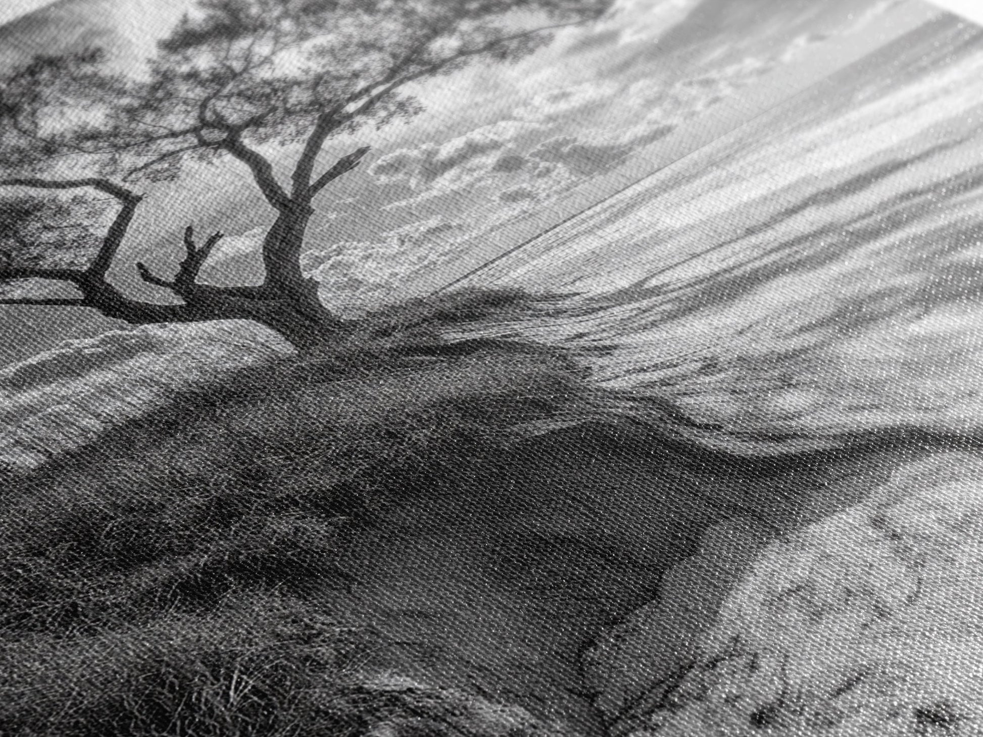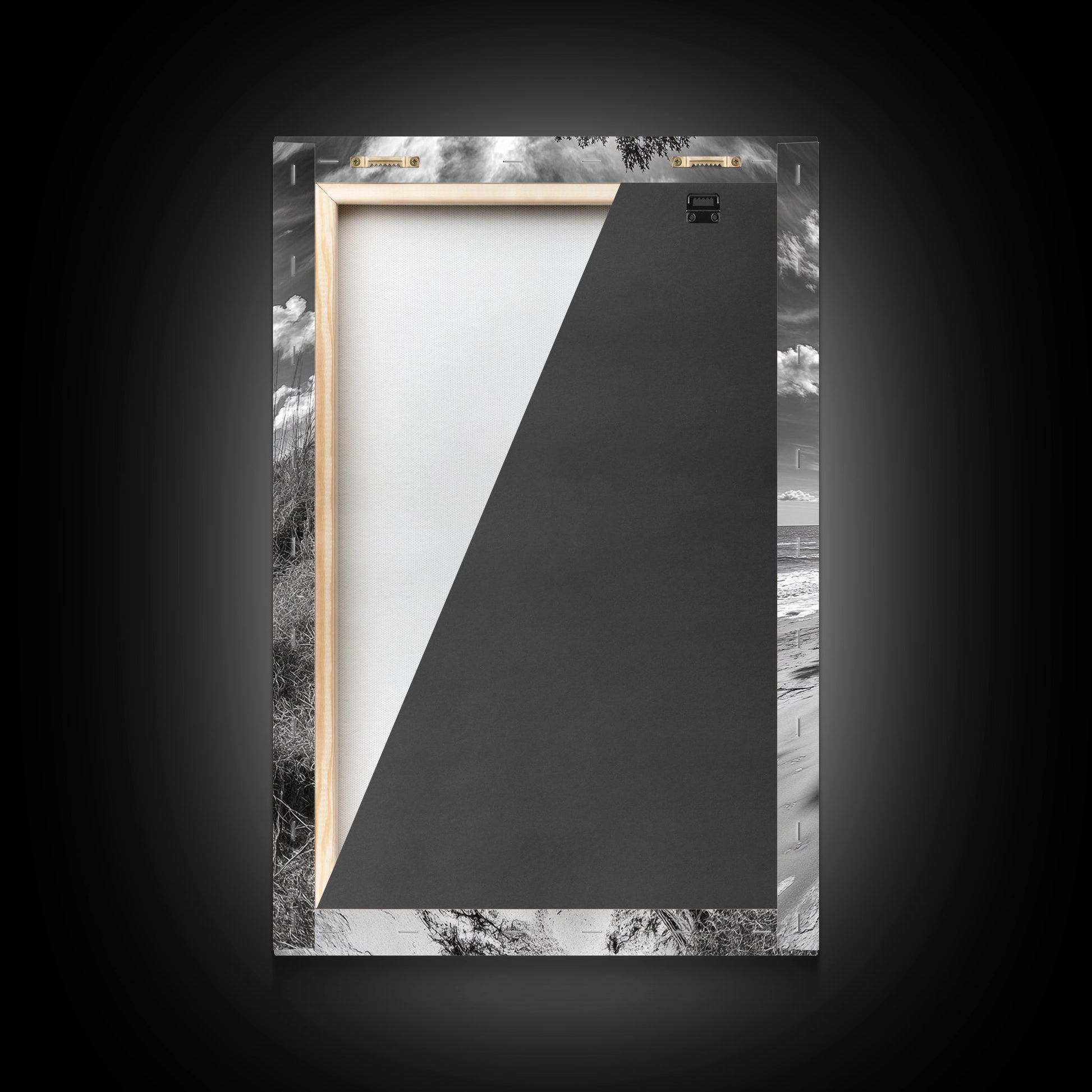Coastal Tree Scene, Wind Swept Dune, Ocean Beach Horizon, Autumn Coastal Wall Art, Framed Canvas Print, Nature Lover Home Decor