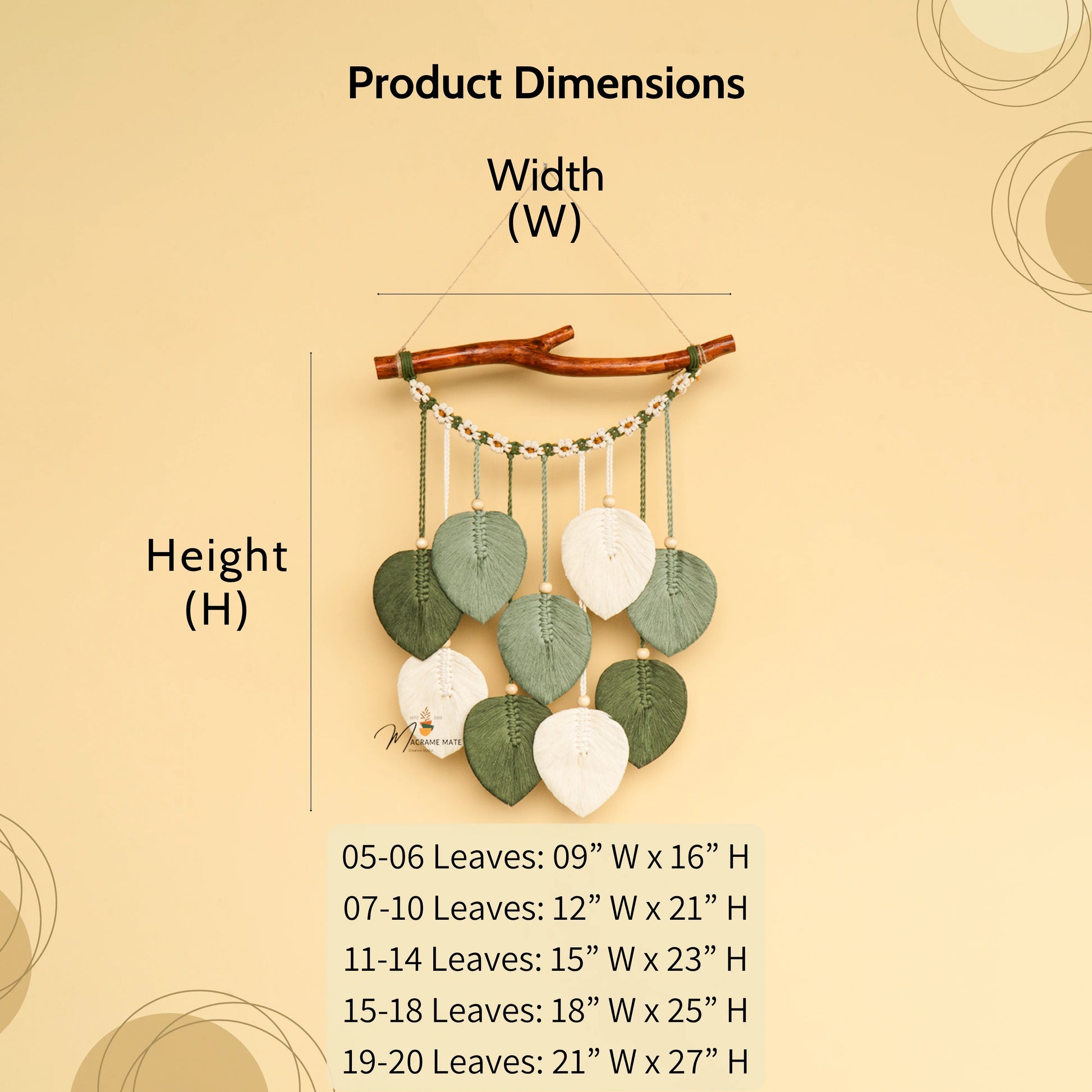 Coda Green Macrame Leaves with Flower Tassel
