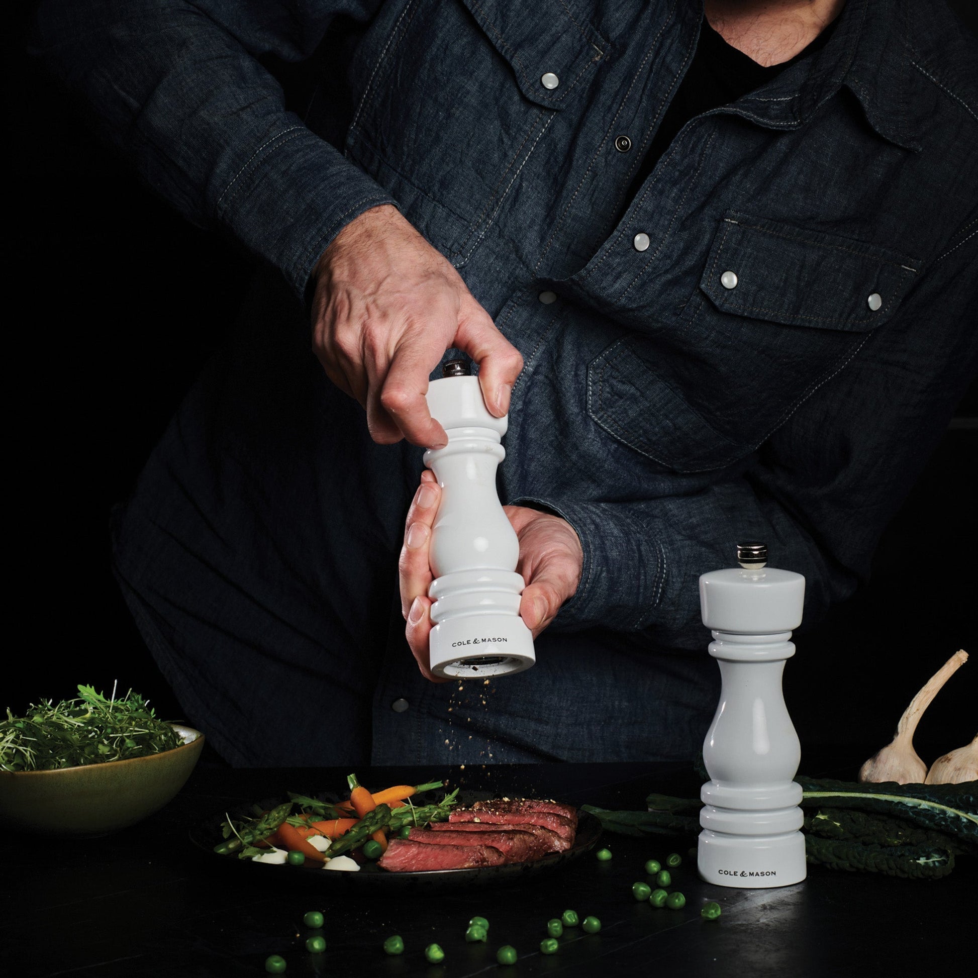 Pepper mills are fitted with a design registered Precision+ carbon steel mechanism, that strips peppercorns instead of crushing them, ensuring maximum flavor release from every turn.