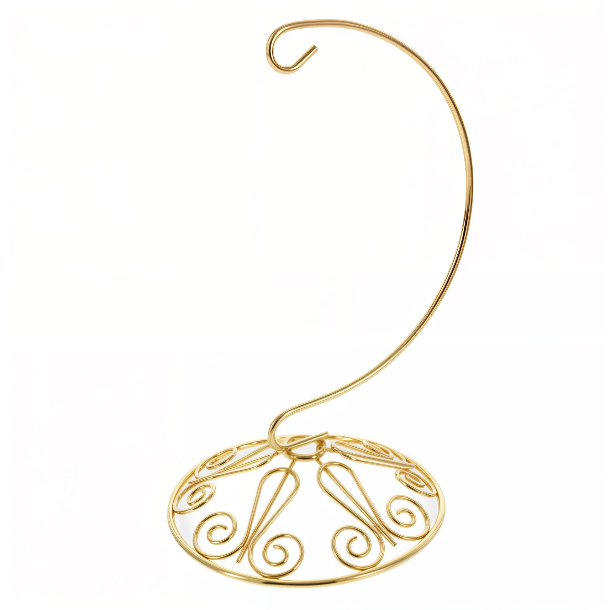 The spiral arm curves gently from top to base, offering a secure hook to hang ornaments while maximizing visibility. Its twisted wire design adds a handcrafted aesthetic, while the stable round base with a decorative curl ensures your ornament stays upright and balanced.