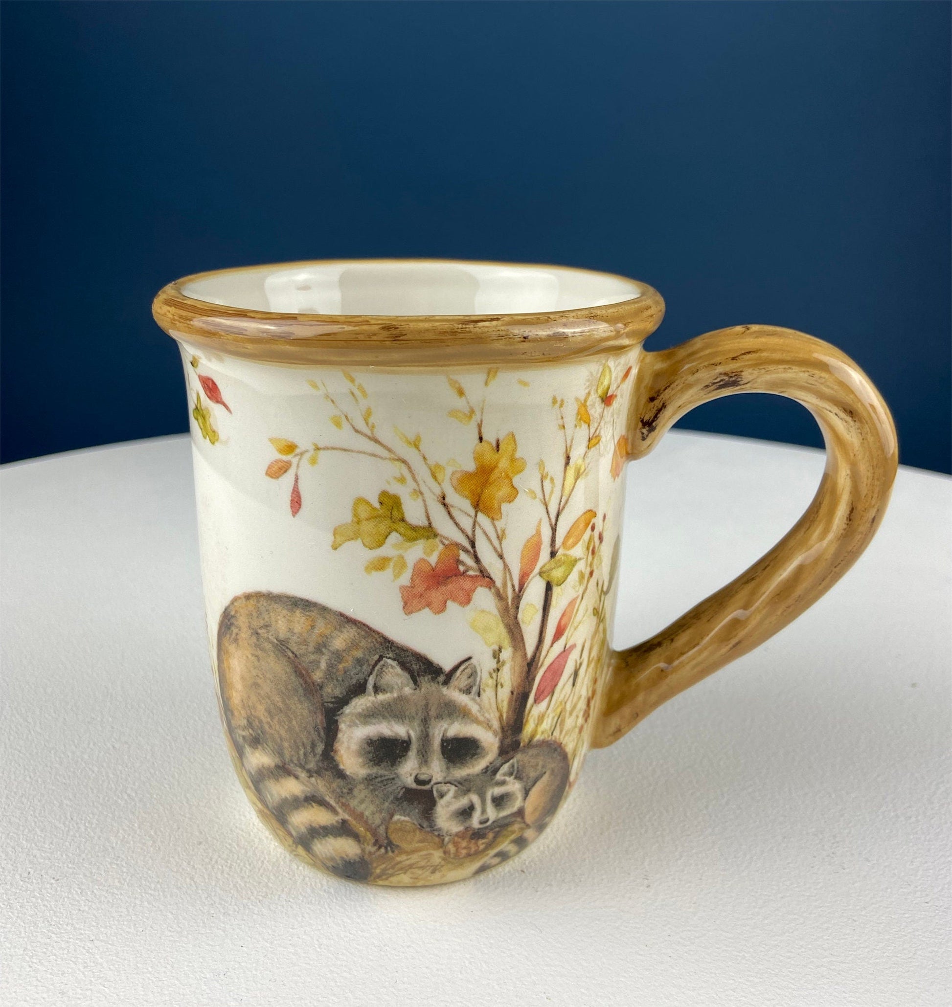 Cute Raccoon Dinner Set for One. Whimsical Plates and Mug. Kid at Heart or Grandparents' Gift for Grandkids. Fall Themed Celebration. Cabin Decor. Gift for Mom. Excellent Condition. Marked by Manufacturer.