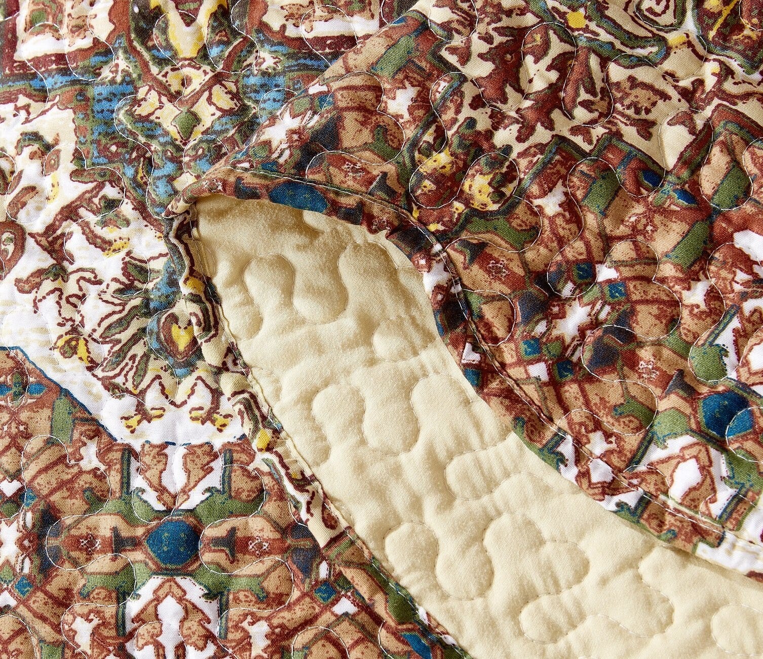 Sleep softly with our earthy floral multi colorful quilted bedspread for a one of a kind and vibrant look added to your bedroom.
