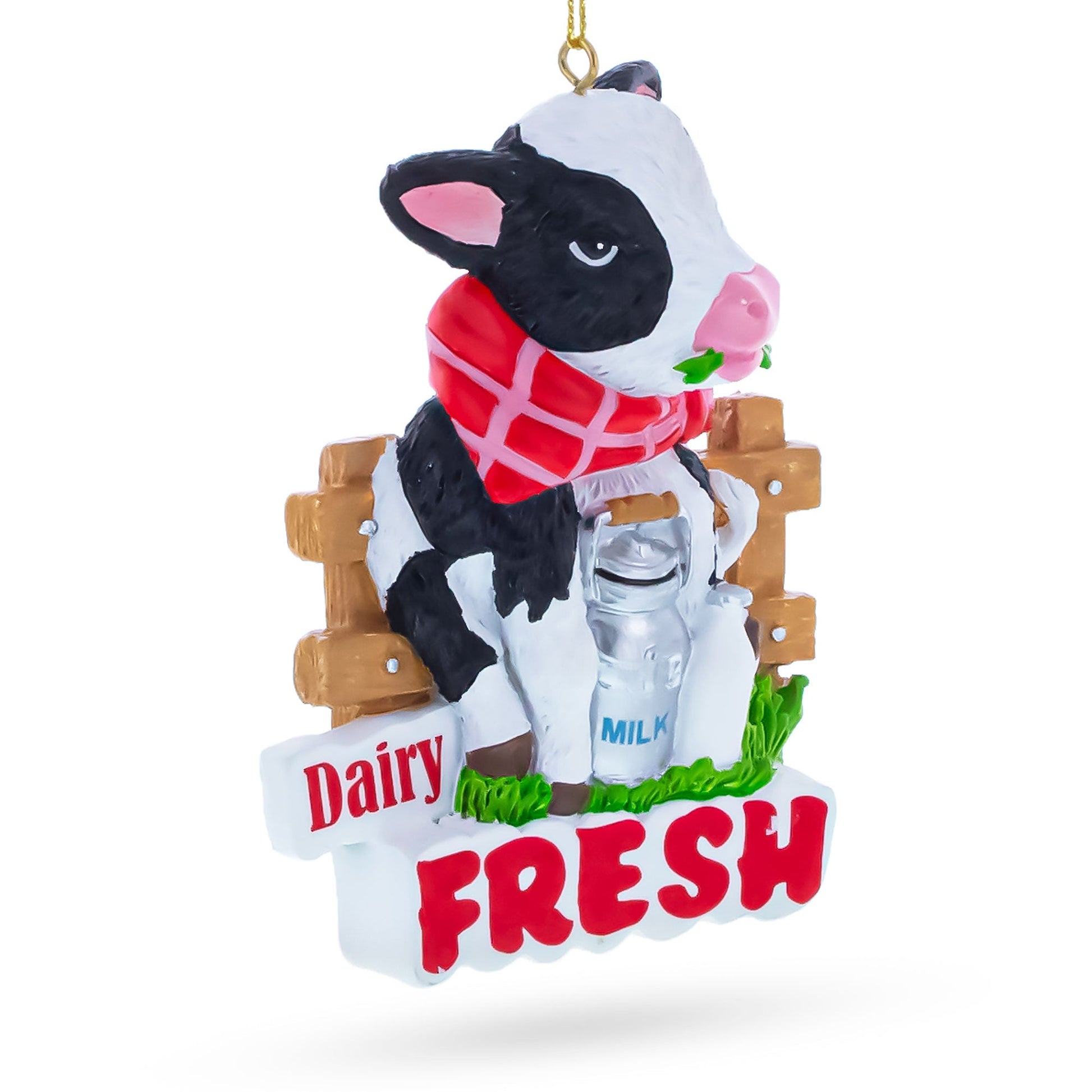 Dairy Fresh Cow with Milk Can Resin Christmas Ornament