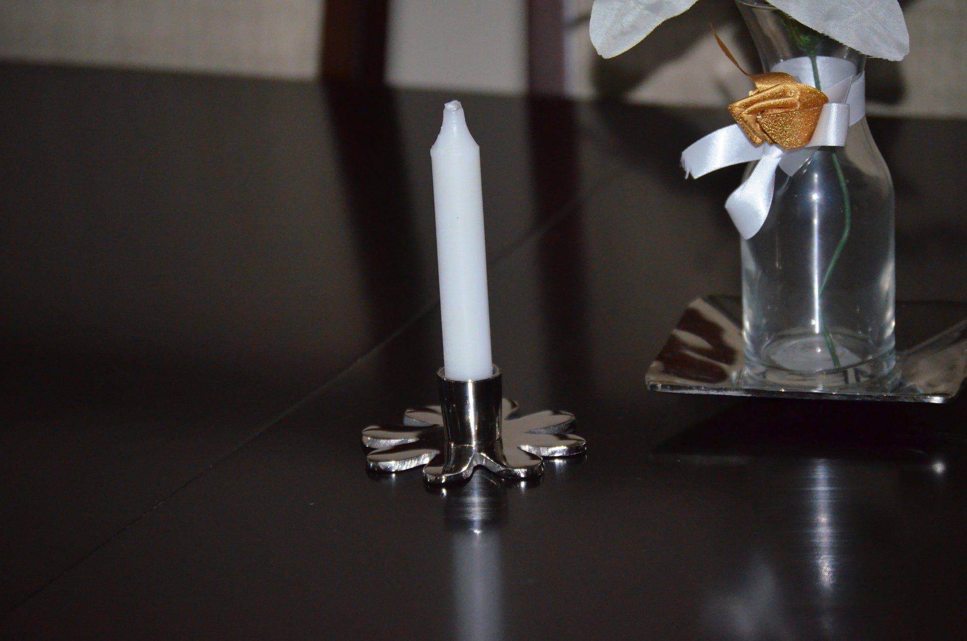 - Silver Flower Candle Holder with Fine Finish. Smooth Shiny Surface like a Mirror. Made of 100% Aluminum. Handcrafted Design makes every piece Unique