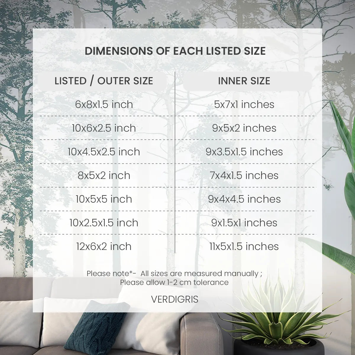 Dimensions of Each Listed Size |