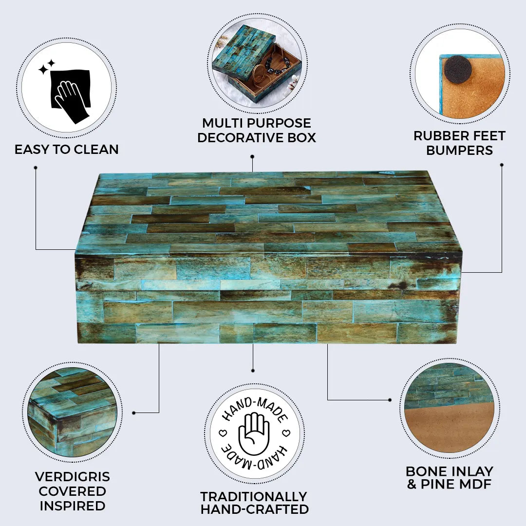 Decorative Storage Box, Bone Inlay in 7 Sizes, Verdigris