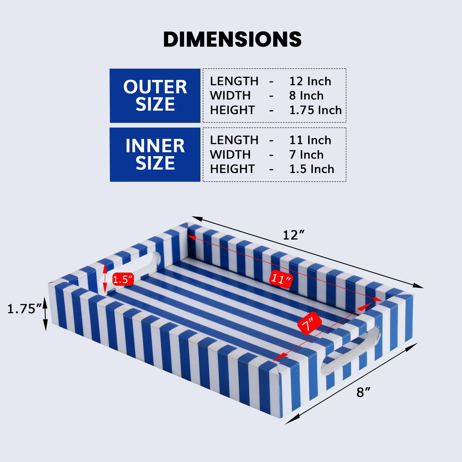 Dimensions: Inner 11x7x1.5 inches | Outer 12x8x1.75 inches.