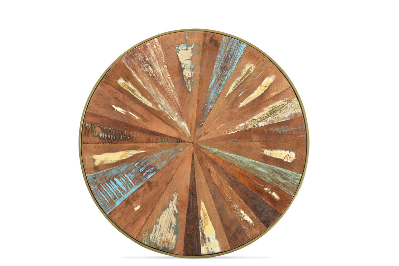 This round nesting coffee table makes a perfect addition to your living room. The reclaimed wood panels bring a unique character and charm that will captivate your guests. With a stylish combination of solid wood and an elegant brass leg frame, it offers both beauty and durability. The strong iron frame provides reliable support, and the table arrives fully assembled for your convenience.