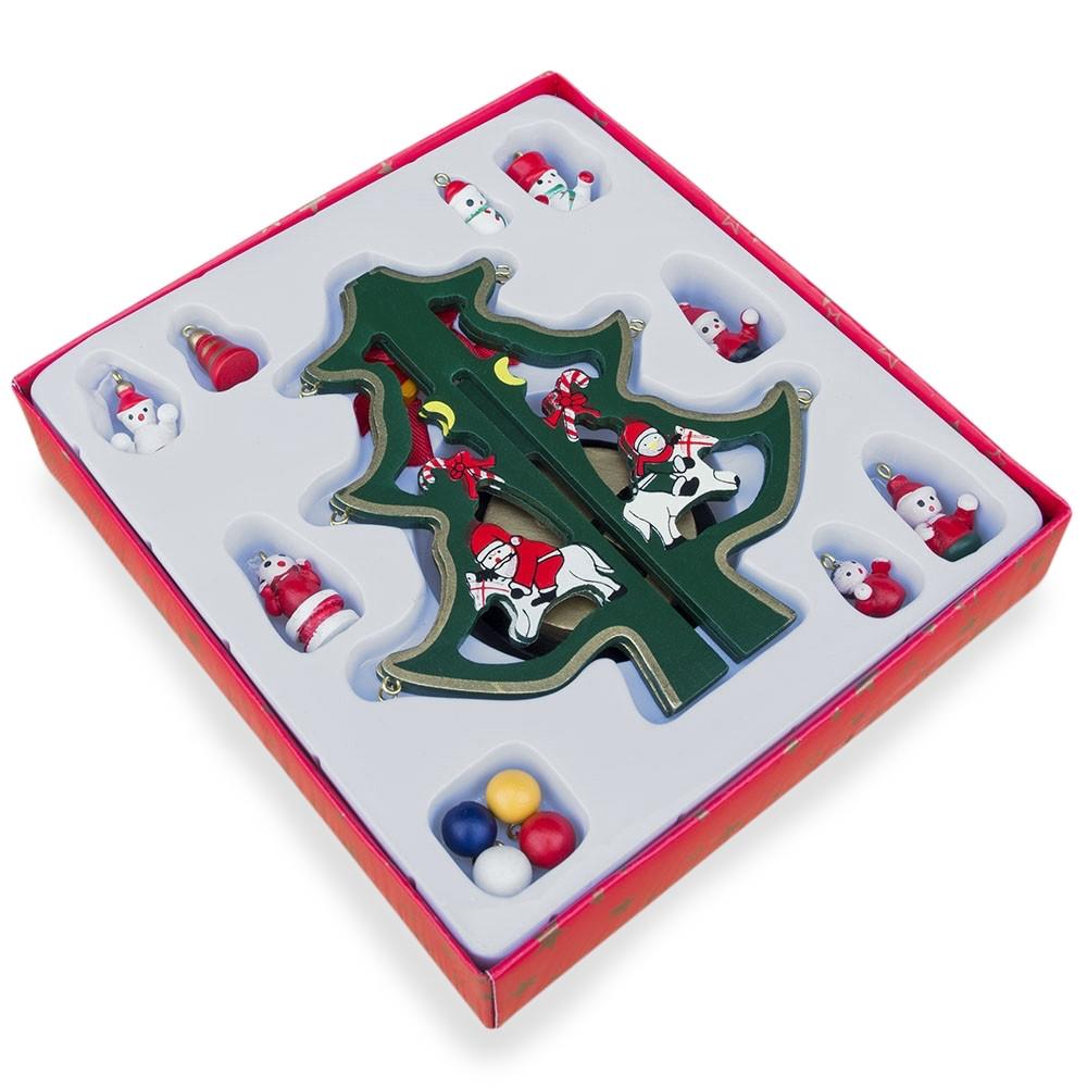 Bring the spirit of Christmas to your home this holiday with our collection of seasonal decor from BestPysanky. This handcrafted 6.5 Inches Wooden Christmas Tree with Ornaments makes a perfect center piece for your table or mantle. The set includes multicolored 12 piece wooden ornaments. Each Christmas tree ornament is hand painted with a colorful design on a wooden piece- Santa, snowman, and Christmas ornaments. There are hand painted Santa's riding a horse on the interior, with candy canes on top. The beautiful golden star on top features a real red ribbon. Perfect for the Christmas season and any place at home that needs a little holiday spirit!