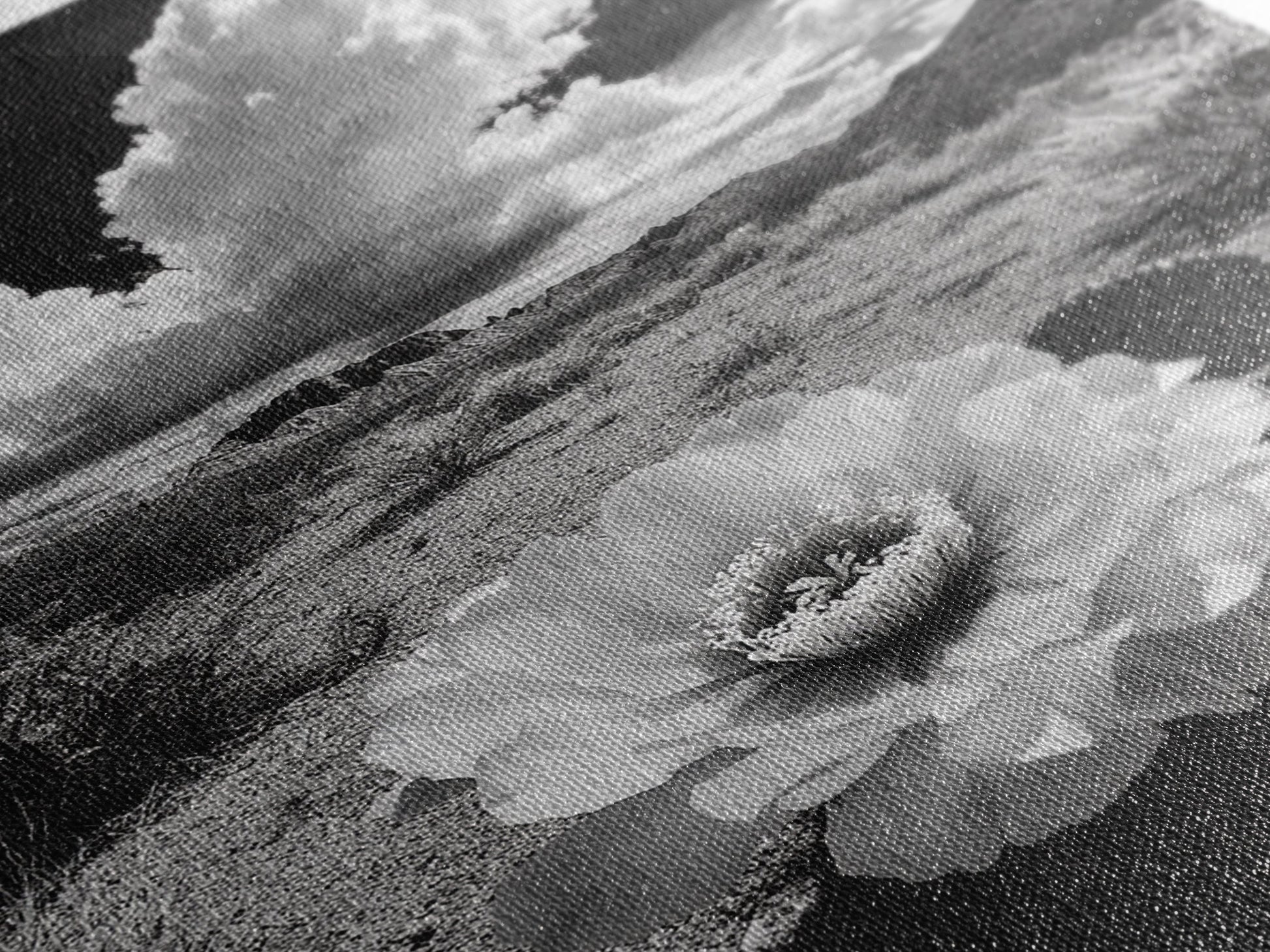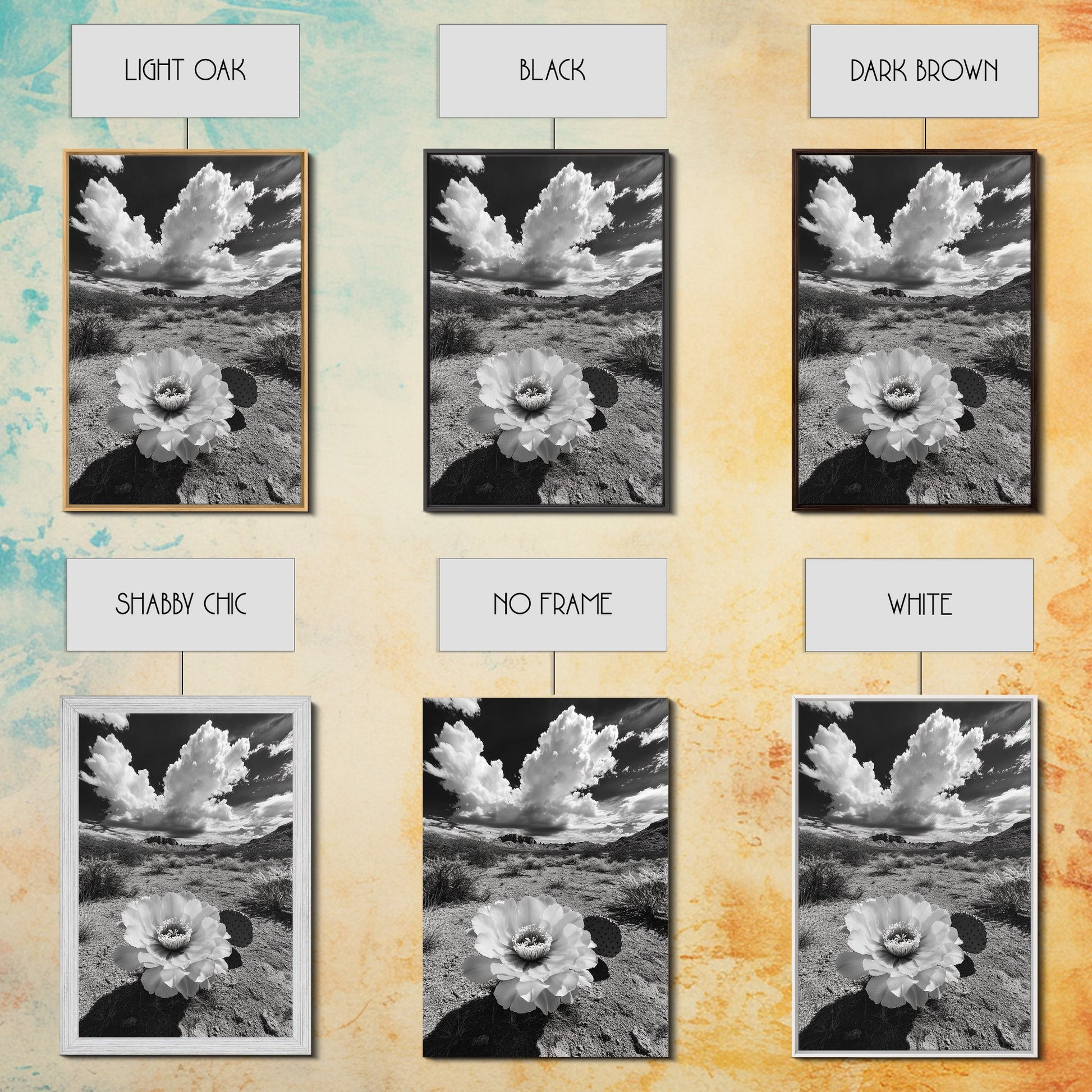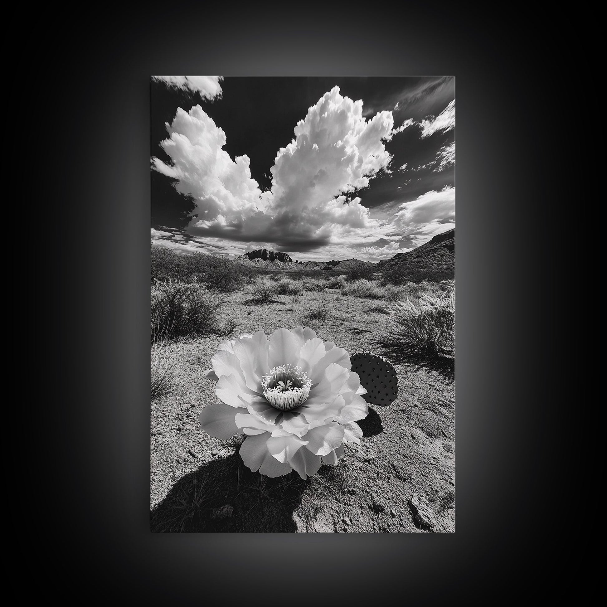 Desert Bloom, Cactus Flower, Bold Nature, Framed Canvas Print, Boho Wall Art, Southwestern Home Decor, Dramatic Desert Photography