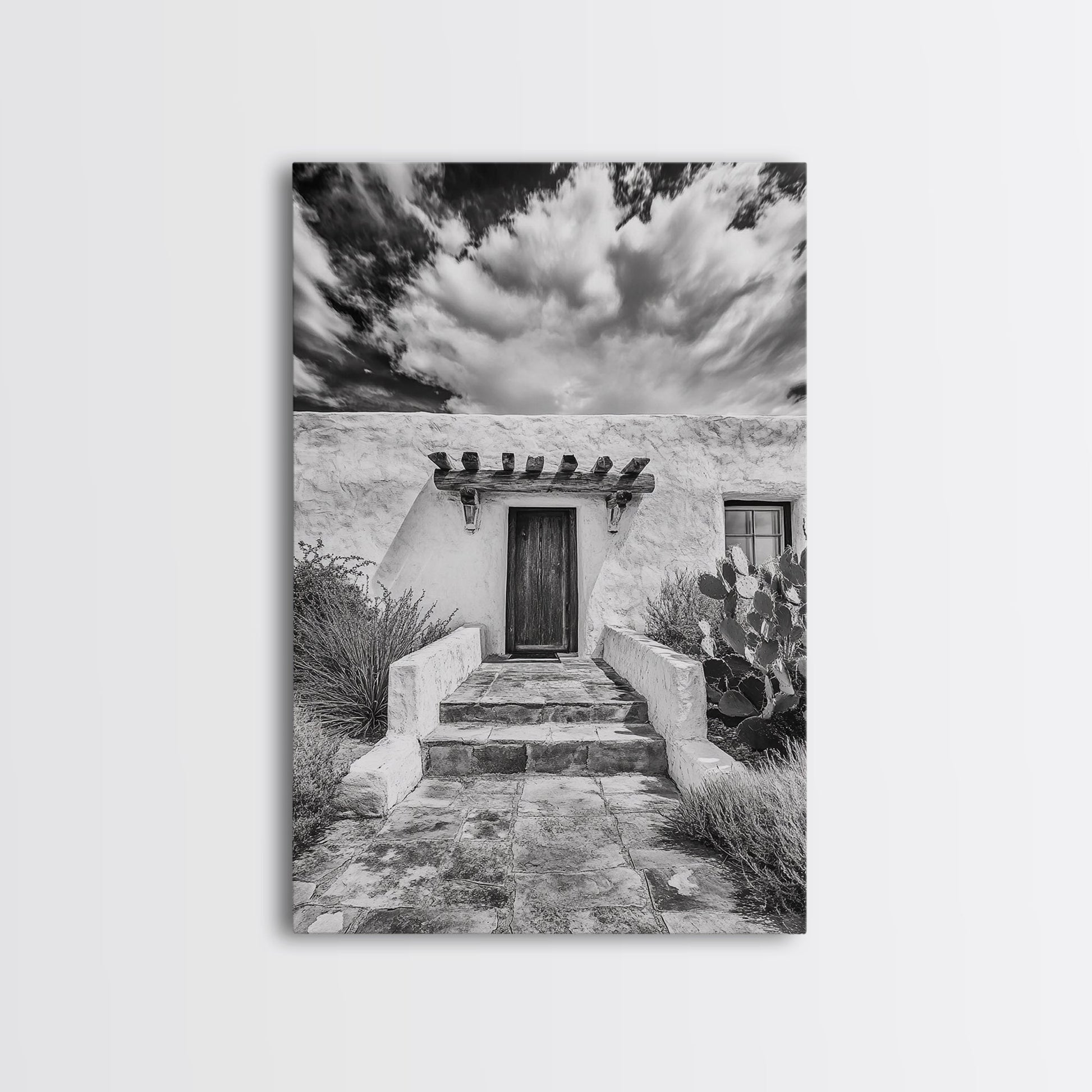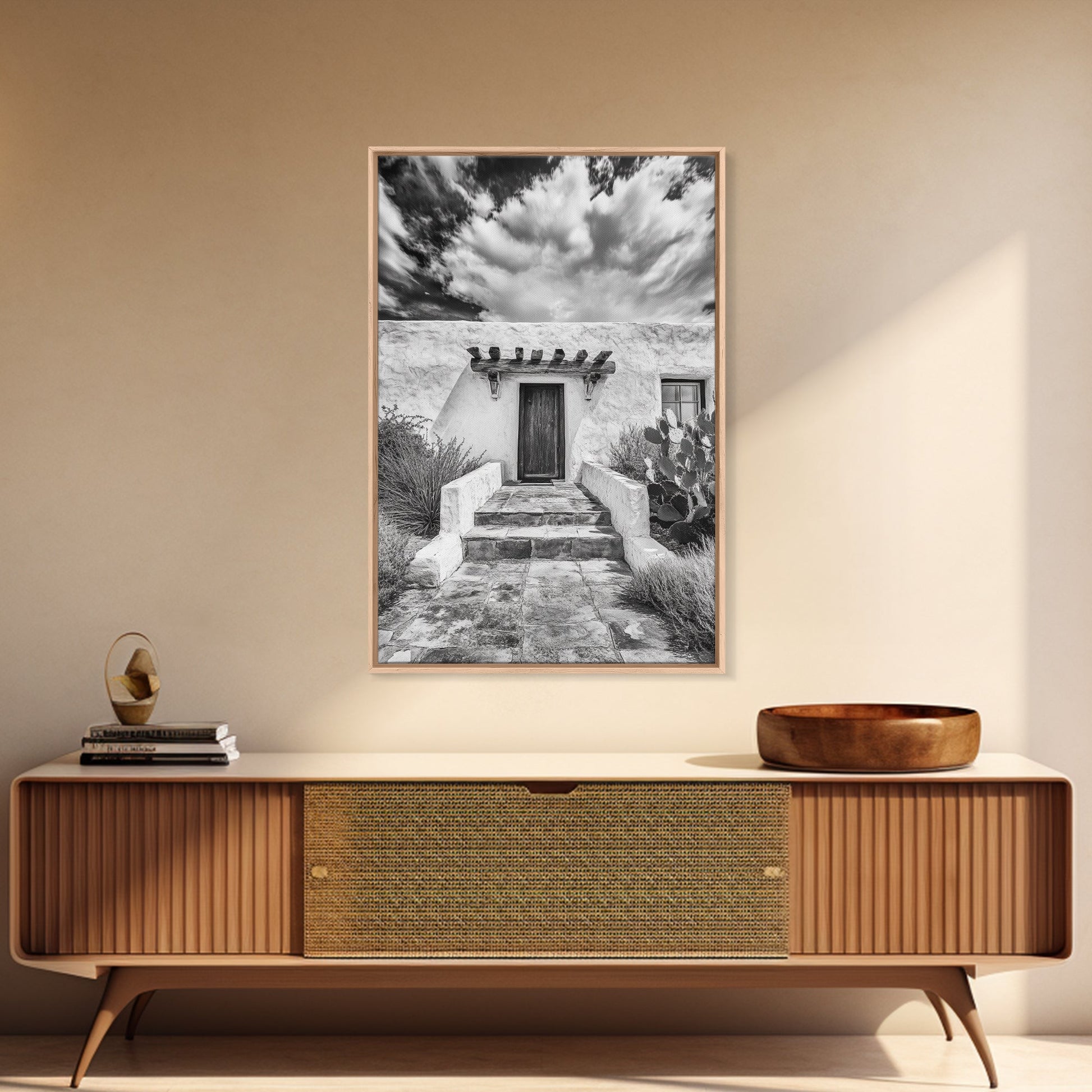 Desert Doorway, Rustic Adobe, Southwestern Style, Framed Canvas Print, Entryway Art, Neutral Wall Art, Minimalist Home Decor