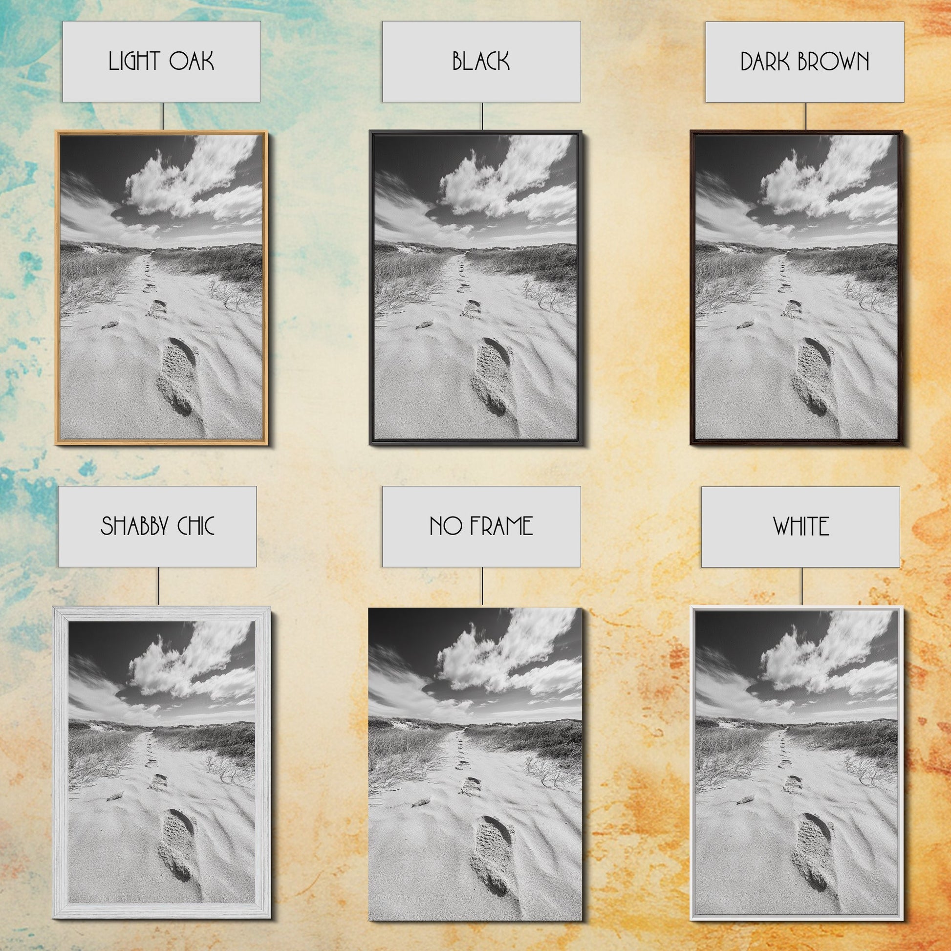 Desert Footprints Path, Dune Art, Wanderlust Vibes, Monochrome Landscape, Framed Canvas Print, Bedroom Wall Decor, Minimalist Travel