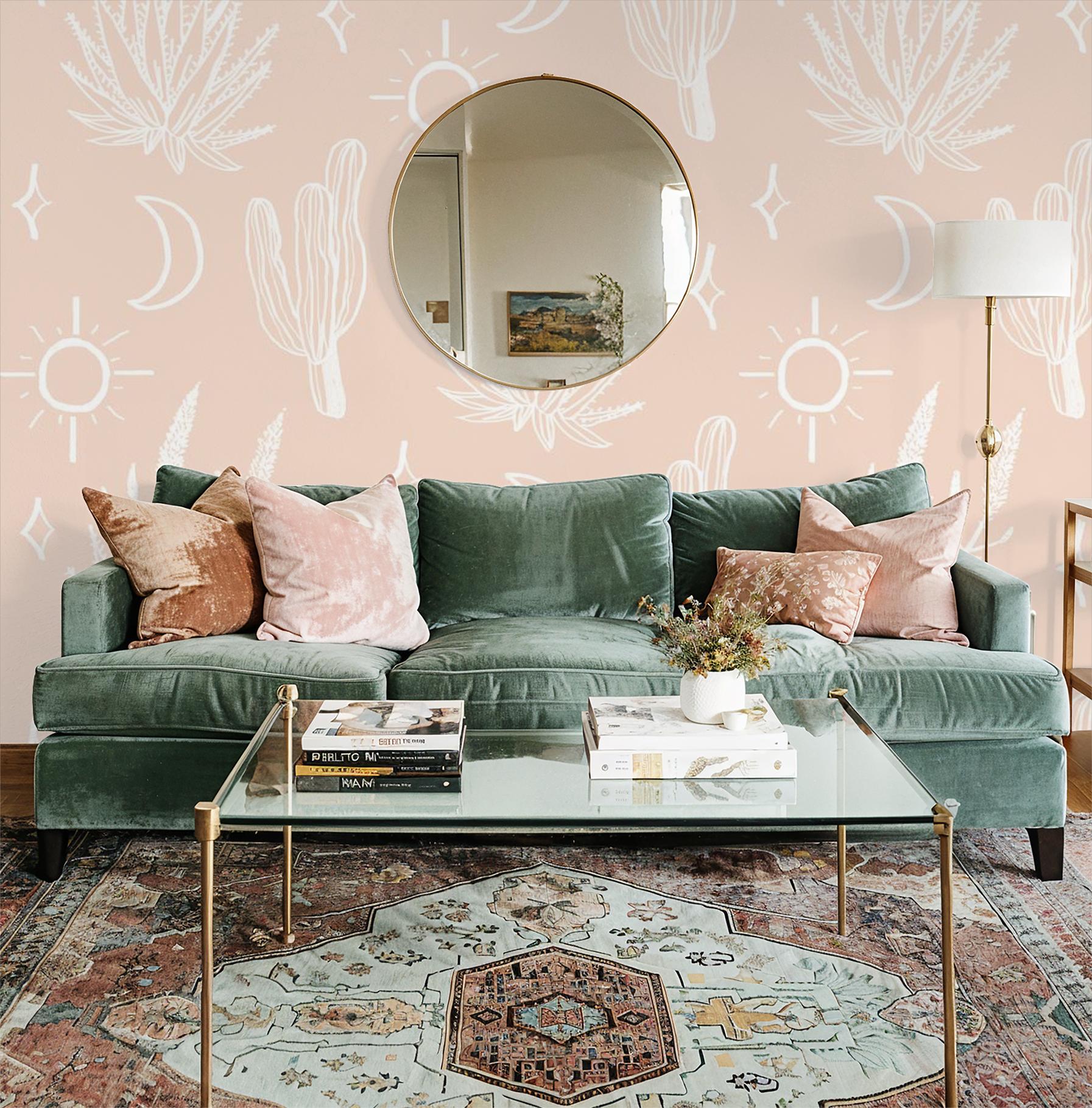 Add a touch of Western charm to your home with the Desert Sky wallpaper. Designed by Samantha Santana, the intricate patterns are inspired by the beauty of the desert landscape and sky. You can easily install it with both peel and stick vinyl and traditional pasted options. Best of all, it's completely removable!