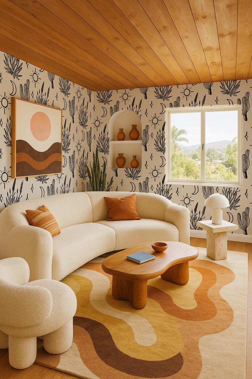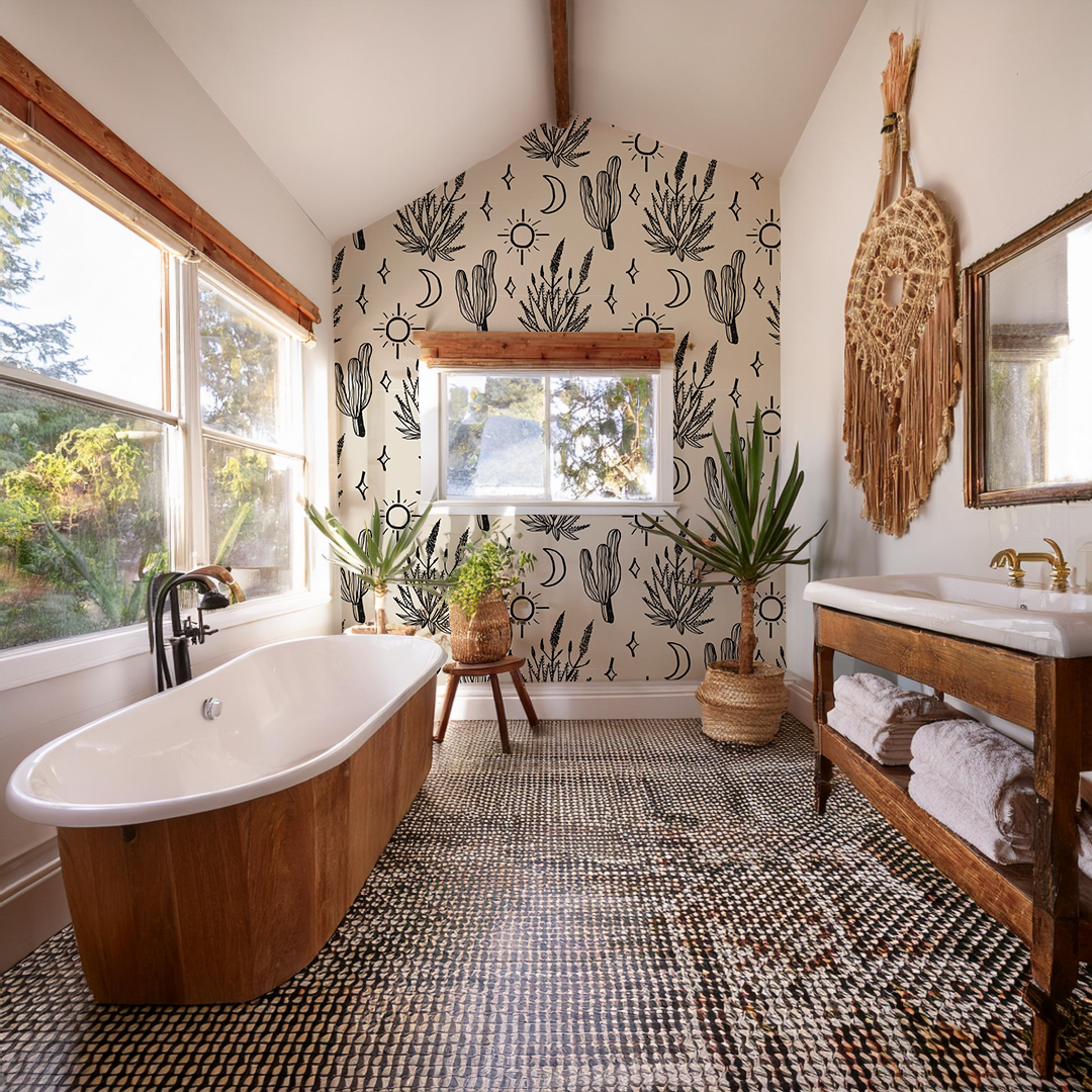 Add a touch of Western charm to your home with the Desert Sky wallpaper. Designed by Samantha Santana, the intricate patterns are inspired by the beauty of the desert landscape and sky. You can easily install it with both peel and stick vinyl and traditional pasted options. Best of all, it's completely removable!