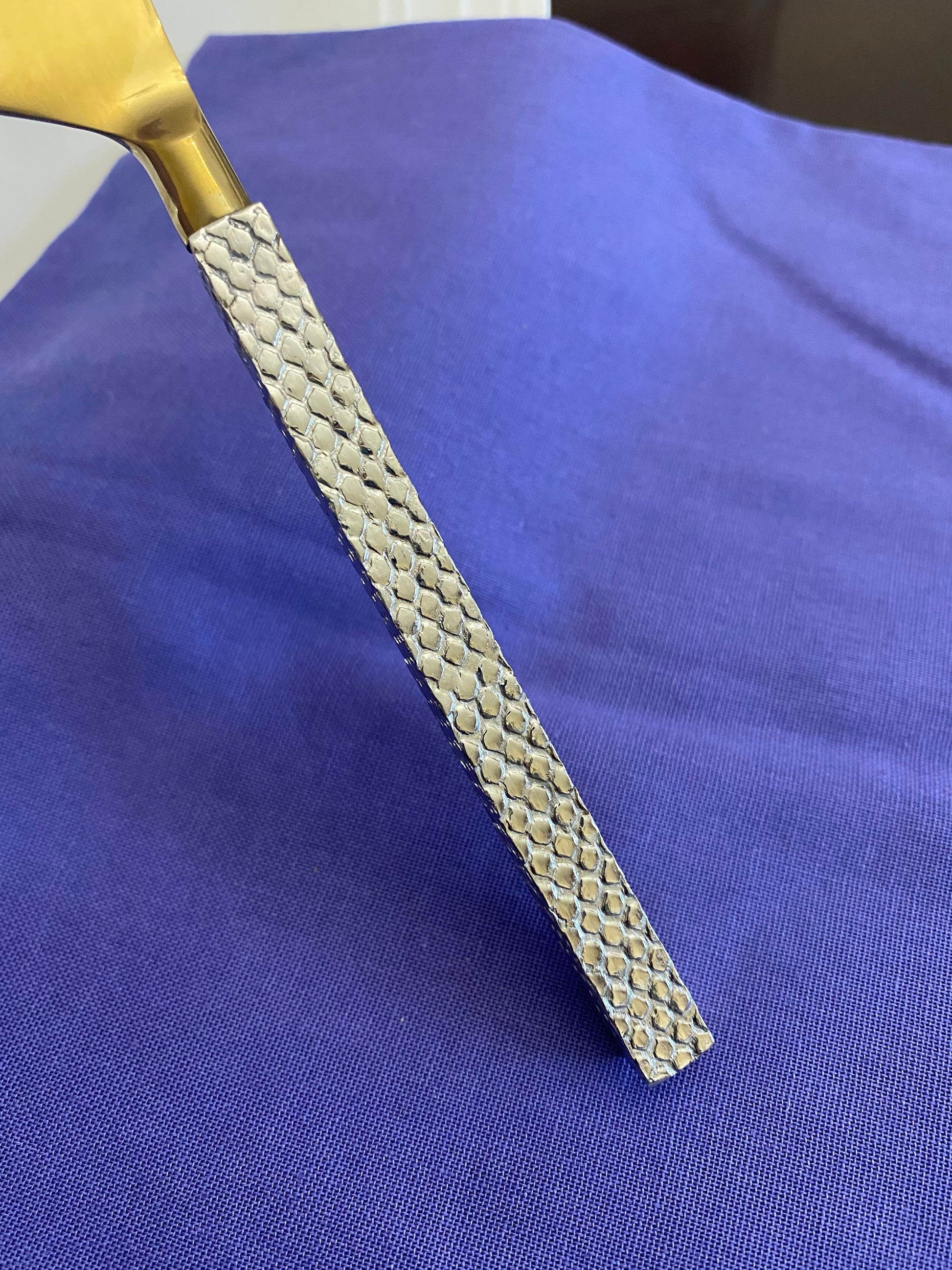 Our breathtaking artisan flatware set is crafted from high-quality heavy 18/0 stainless steel and features designer handles, which are made from smooth aluminum