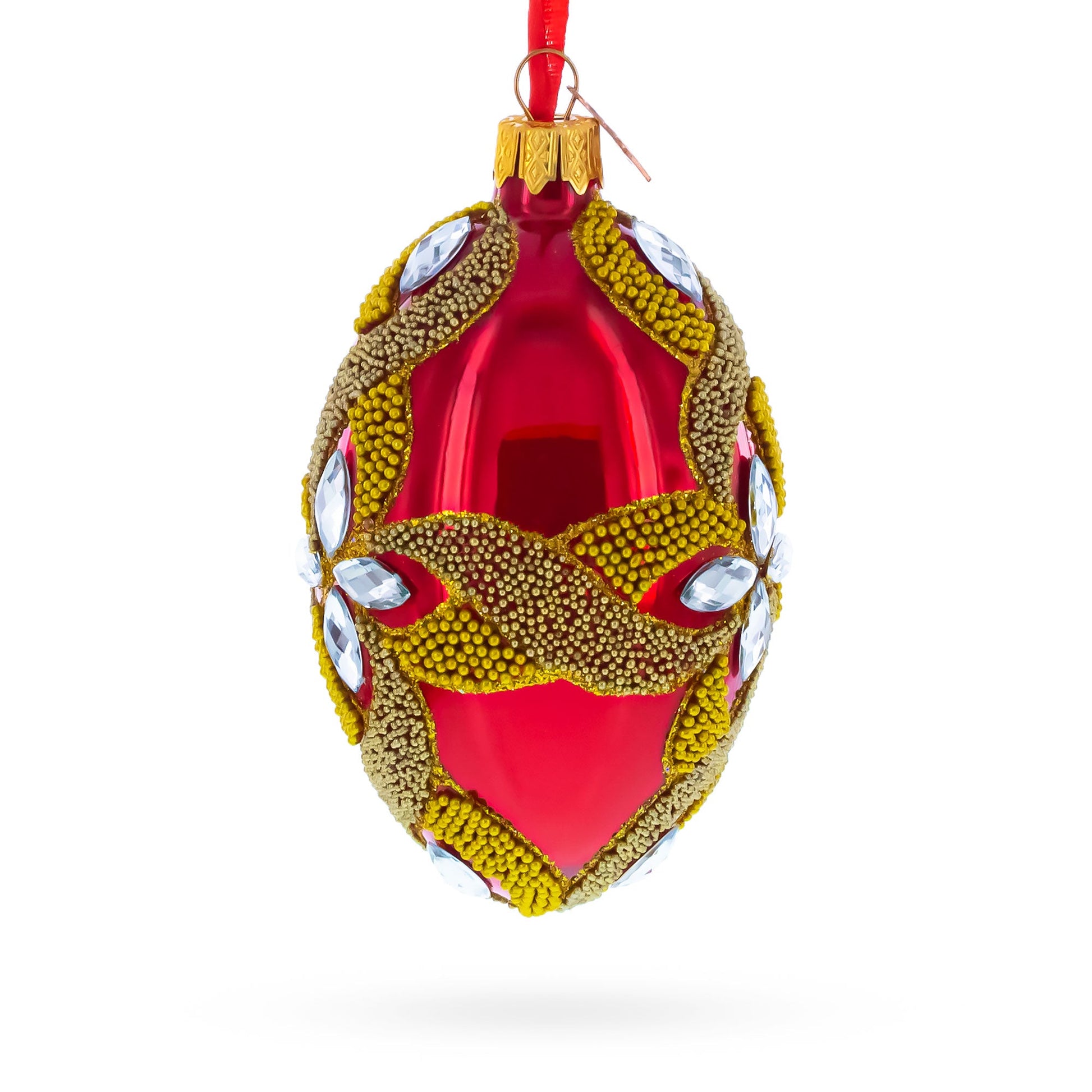 Diamond Star on Red Glass Egg Ornament 4 Inches