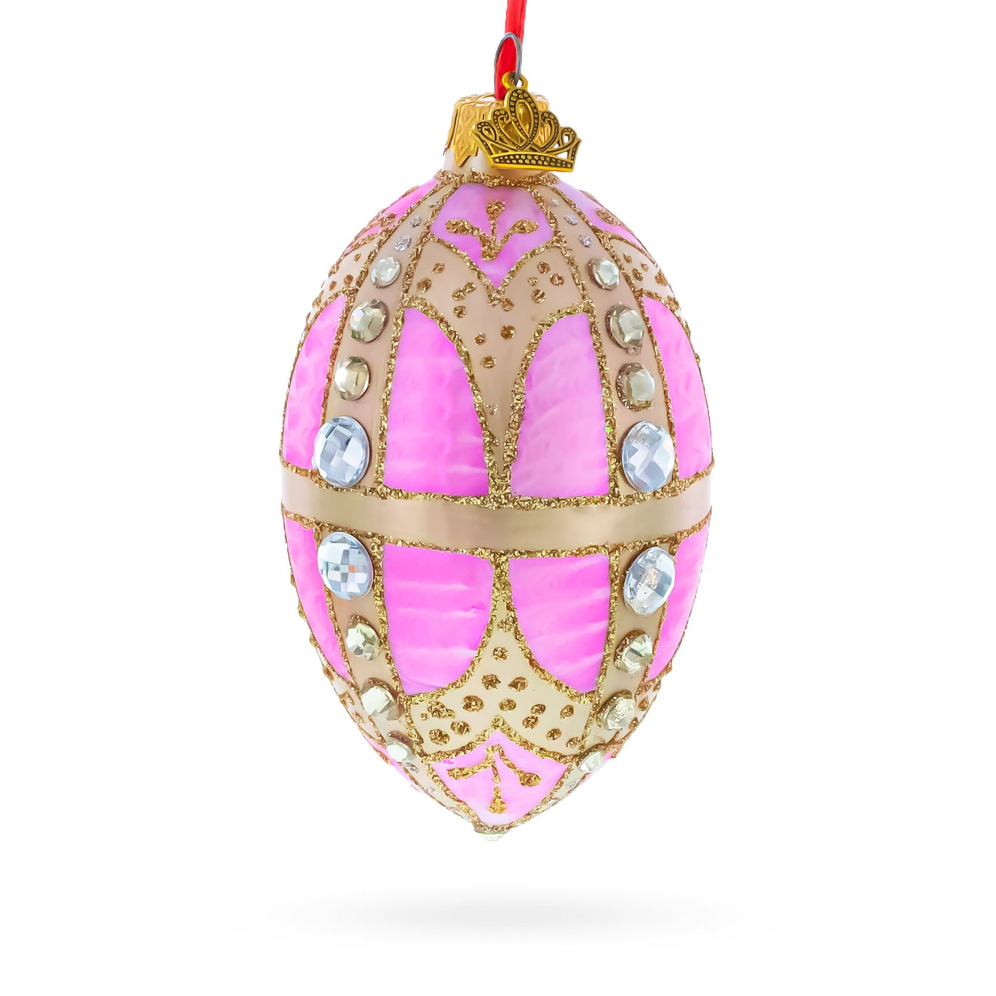 Diamonds on Gold and Pink Glass Egg Ornament 4 Inches