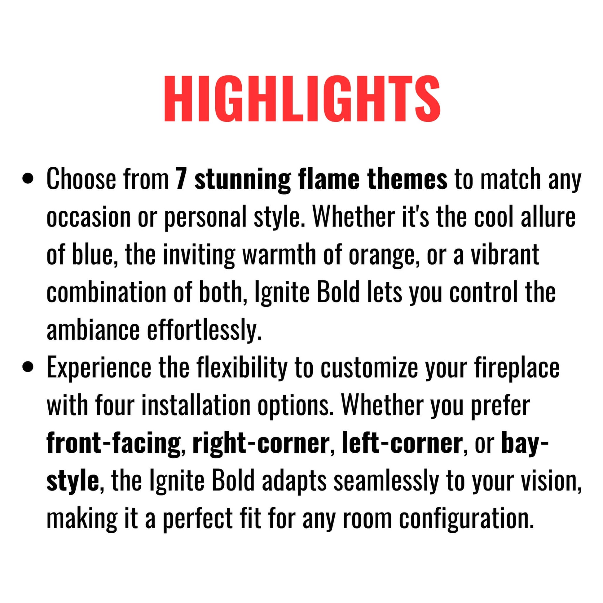 Transform your space into a haven of relaxation and style with the Ignite Bold Electric Fireplace.