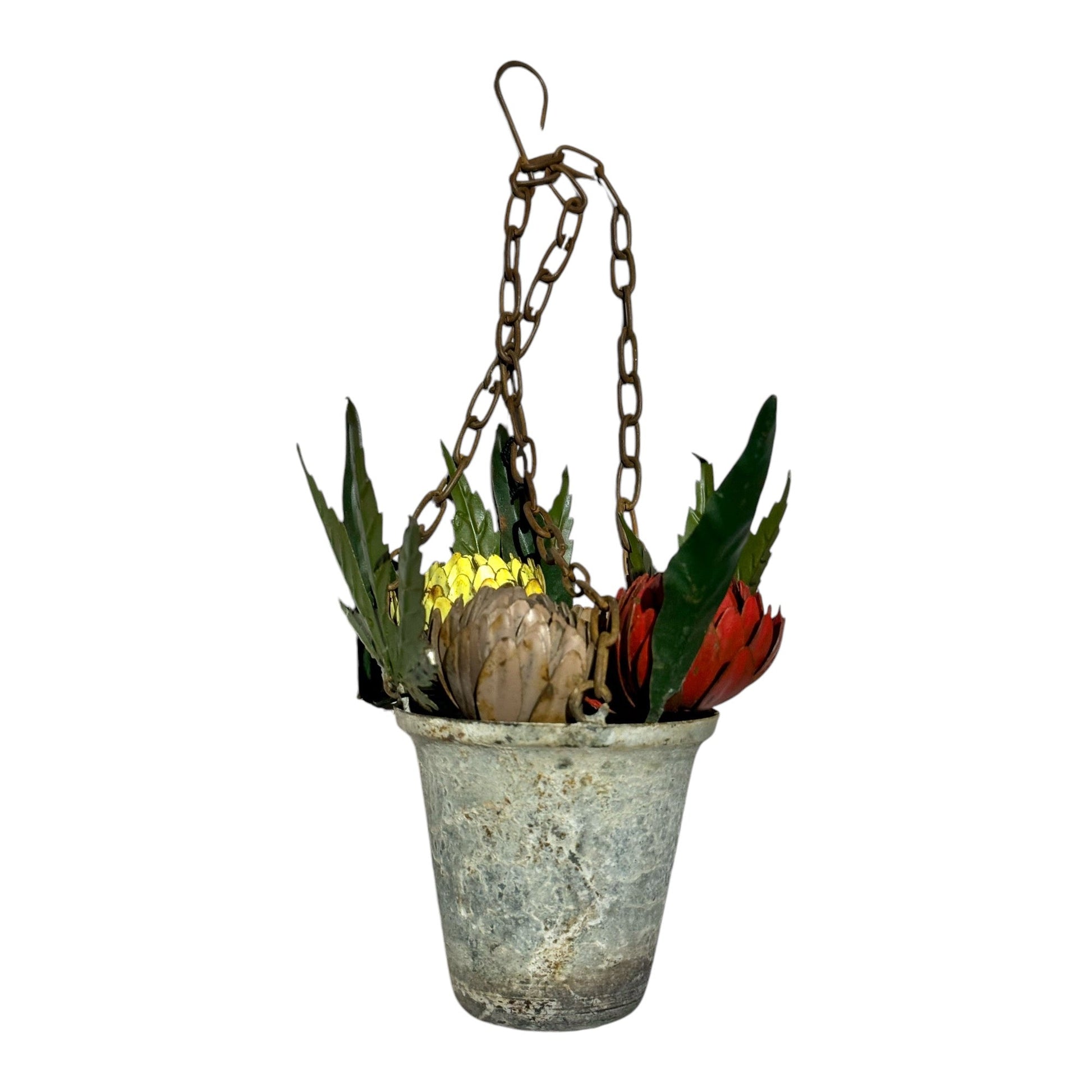 Distressed Painted Metal Flowers in Pot Ornament