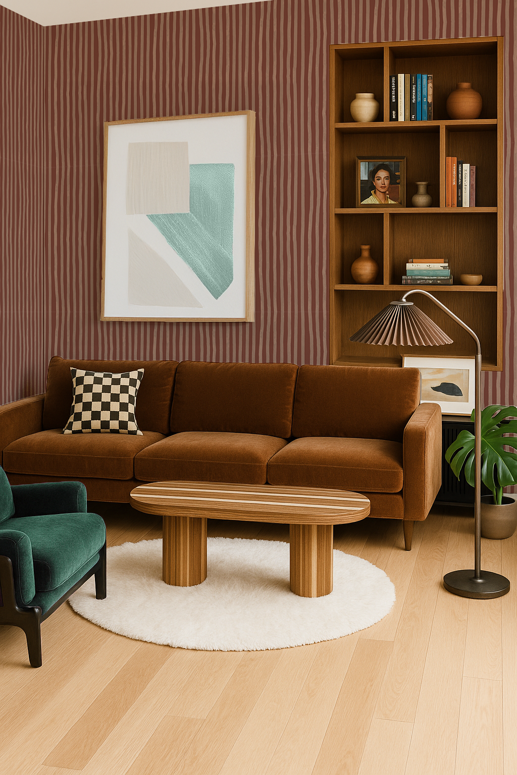 Bring a modern twist to your walls with the Dolce Stripe Wallpaper in brown and peach, featuring Samantha Santana’s unique illustration. This new take on a classic candy stripe pattern adds charm and style, while offering easy installation with peel-and-stick vinyl or traditional paste methods. Completely removable, it’s ideal for those who want a stylish update without commitment.