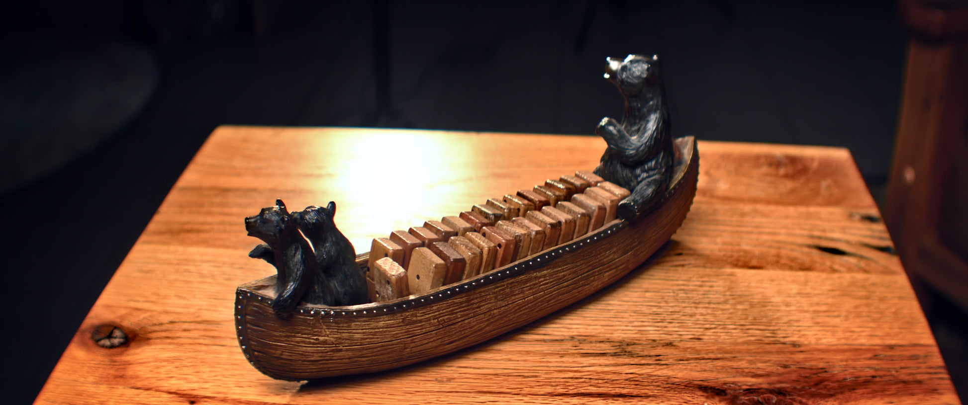 This domino set by Rivers Edge Products features a black bear paddling her two cubs. The canoe holds a wooden domino set which are included. This domino set makes for a perfect gift idea for any outdoor enthusiast.