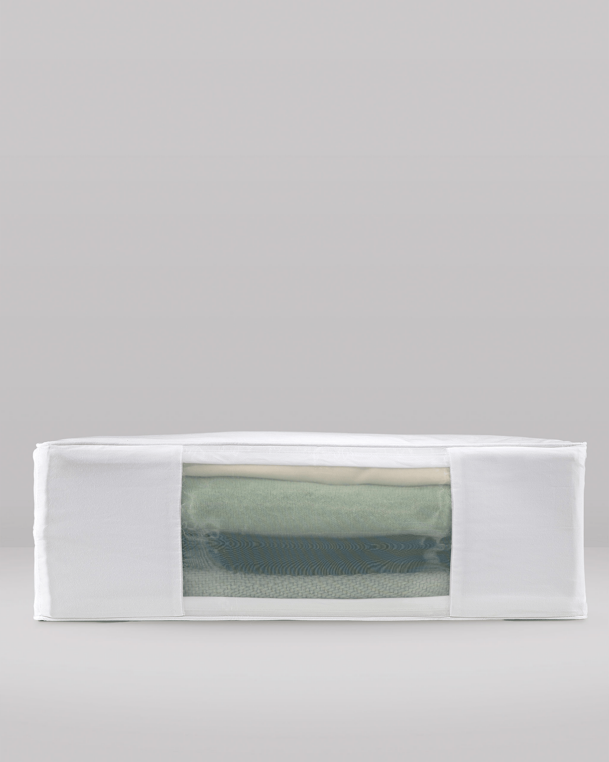 - Holds up to nine thin sweaters, four blankets, or one large comforter