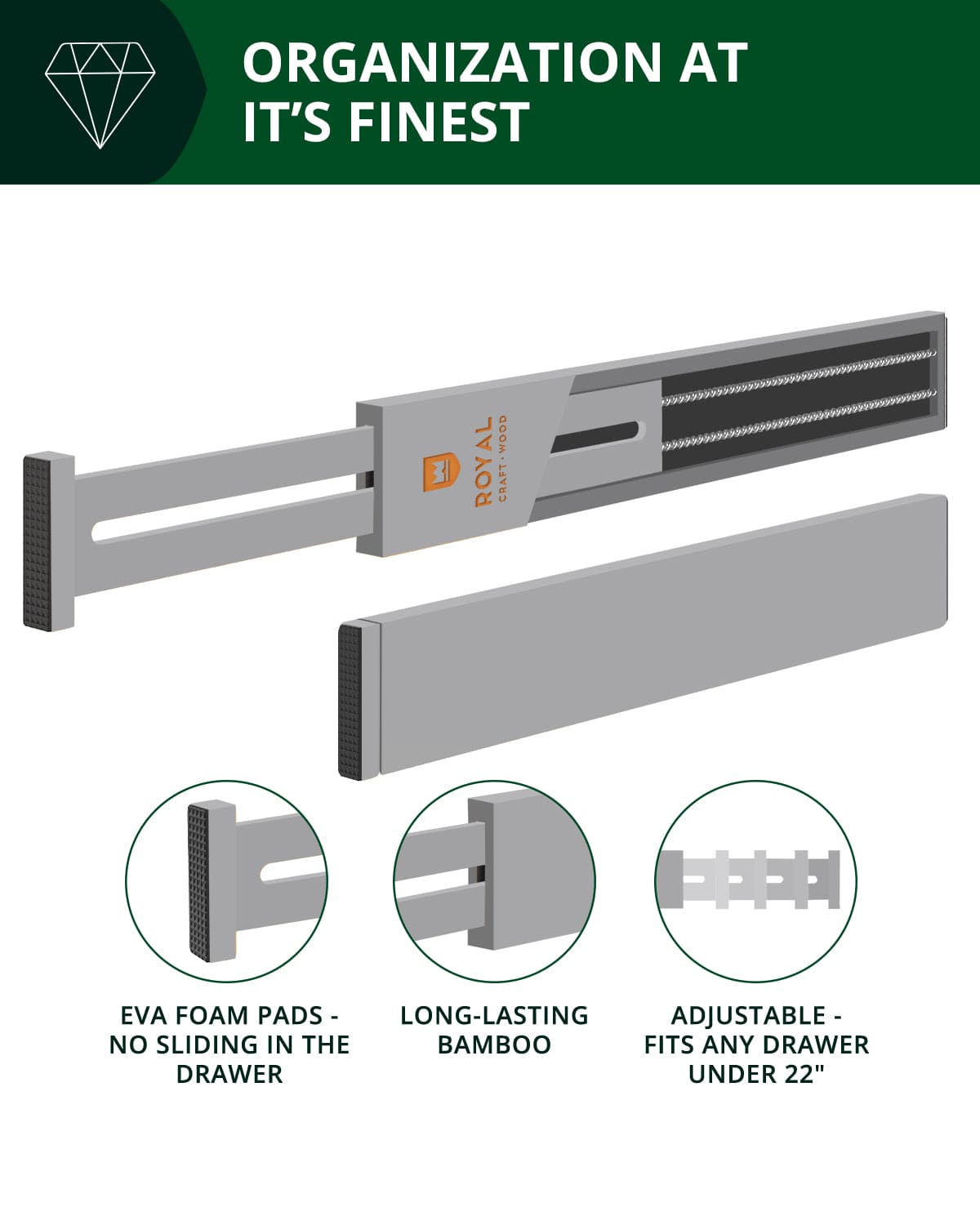 Drawer Dividers 22”, Gray