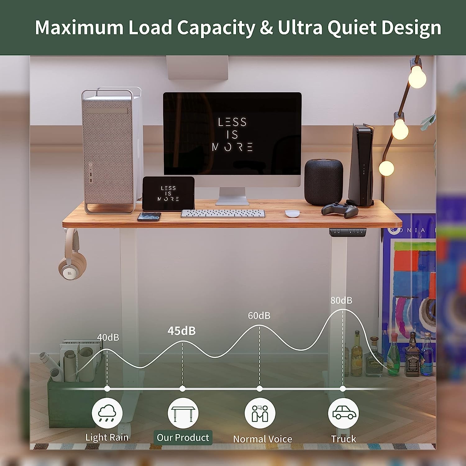 - Electric height adjustment with 3 preset memory positions: set your favorite heights from 27.3" to 45.5" for sitting, standing, and in-between comfort.