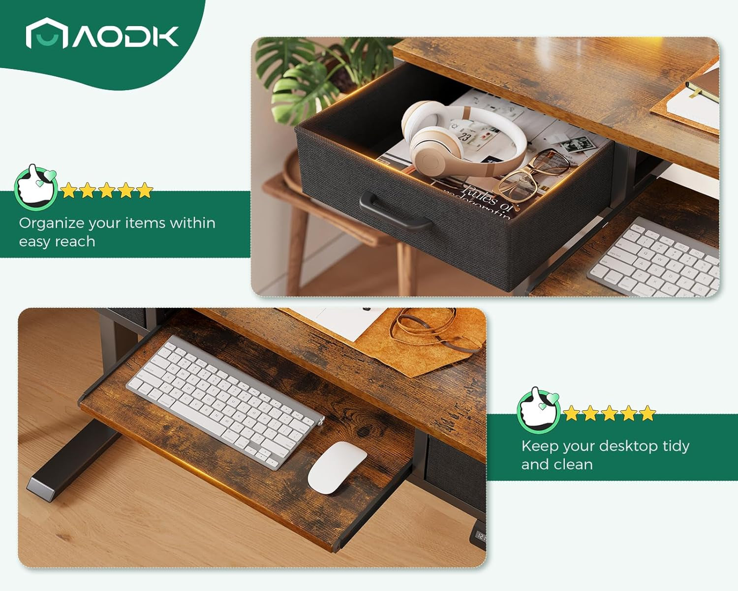 - Smart storage solution: 2 cloth drawers and 1 keyboard tray; iron-framed drawers cut assembly time and maximize organization.