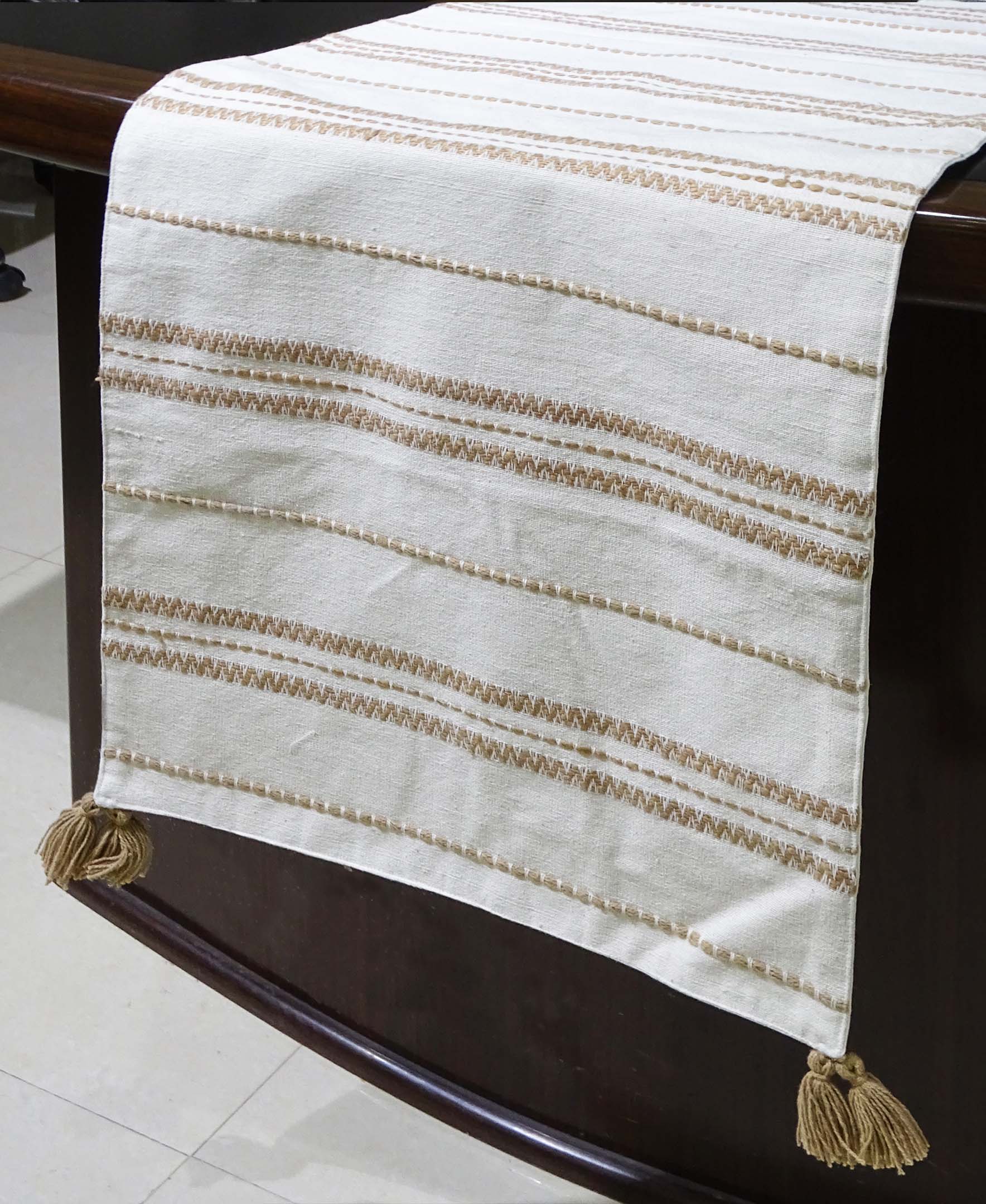 Elegant Beige off-white Embroidered Cotton Table Runner - 16"x90"