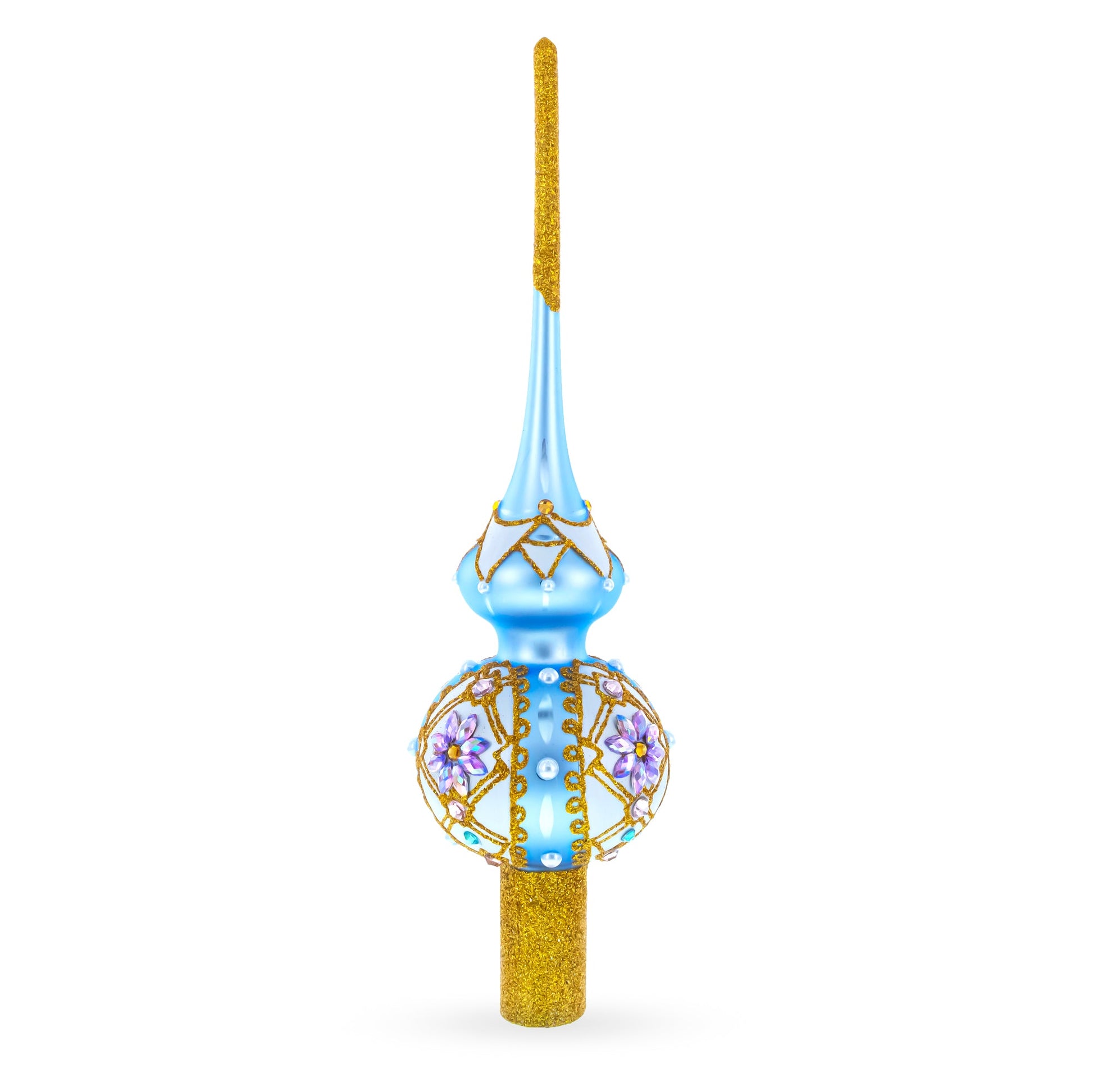 Elegant Blue and Purple Jewel-Encrusted Glass Tree Topper 11 Inches