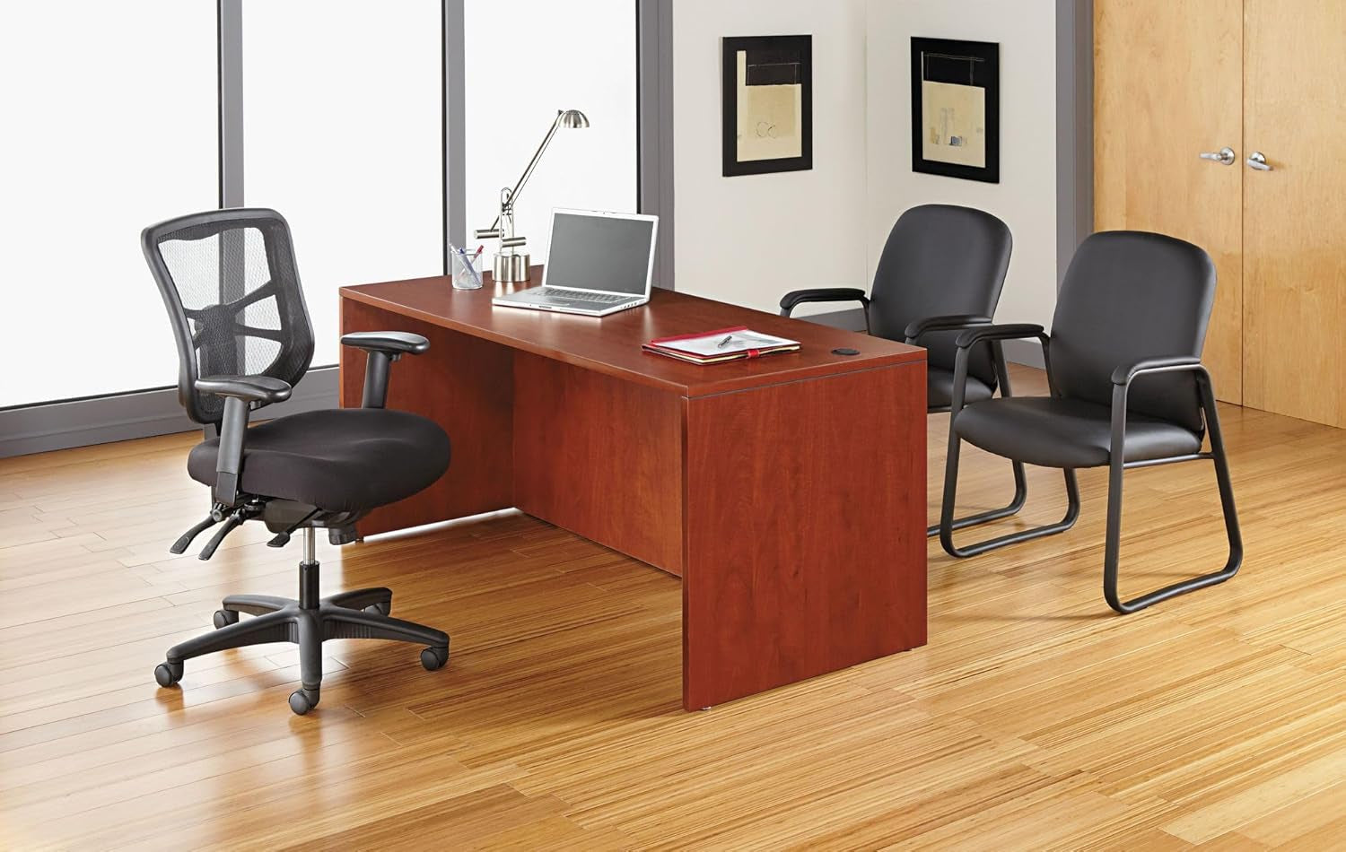 - Cool, breathable high-back mesh: A 24-inch high back supports your spine while promoting airflow to keep you cool during intensive work periods.