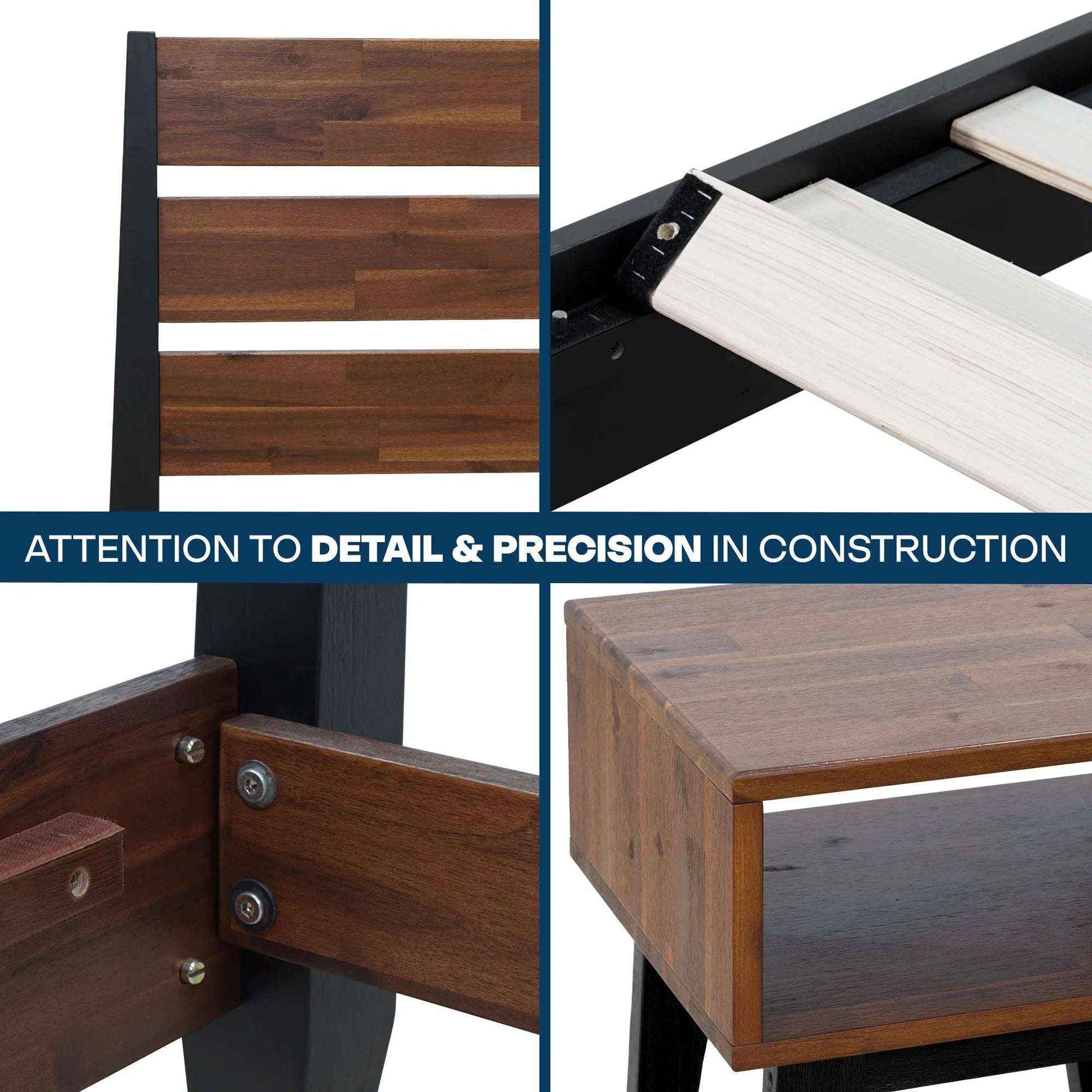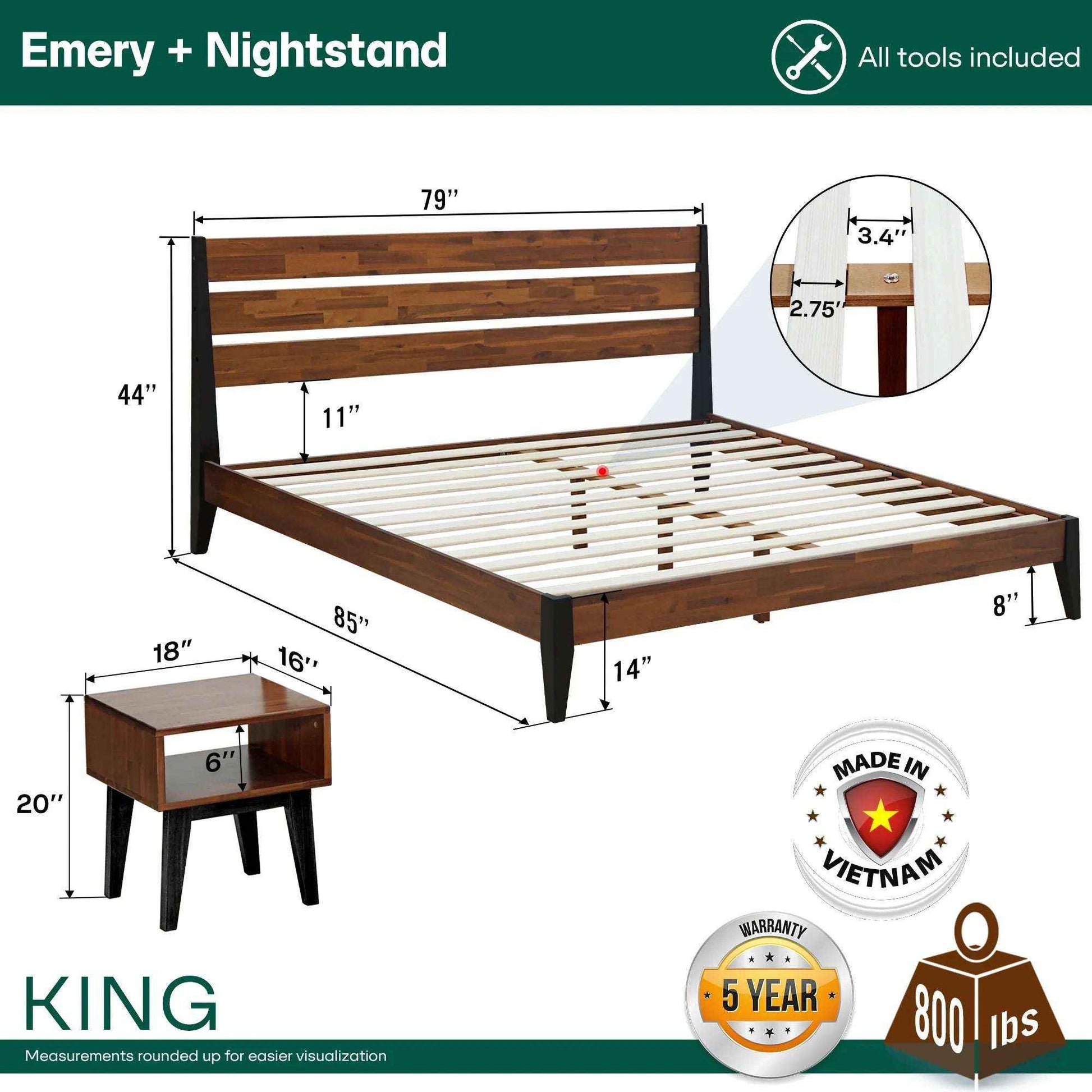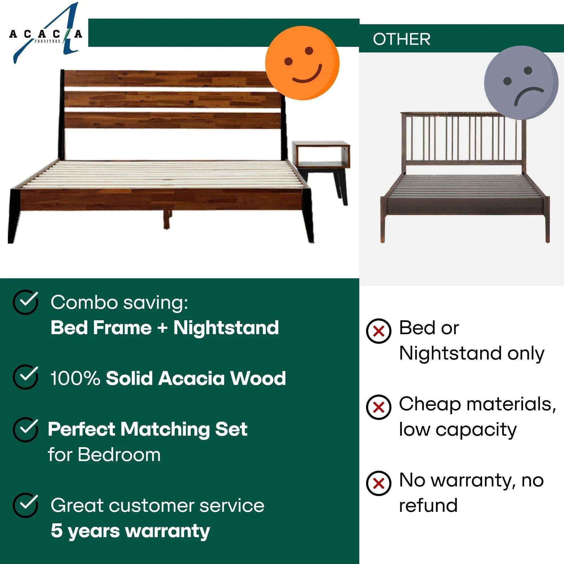 Emery Bed Frame & Nightstand Set - Acacia Solid Wood Bedroom Furniture