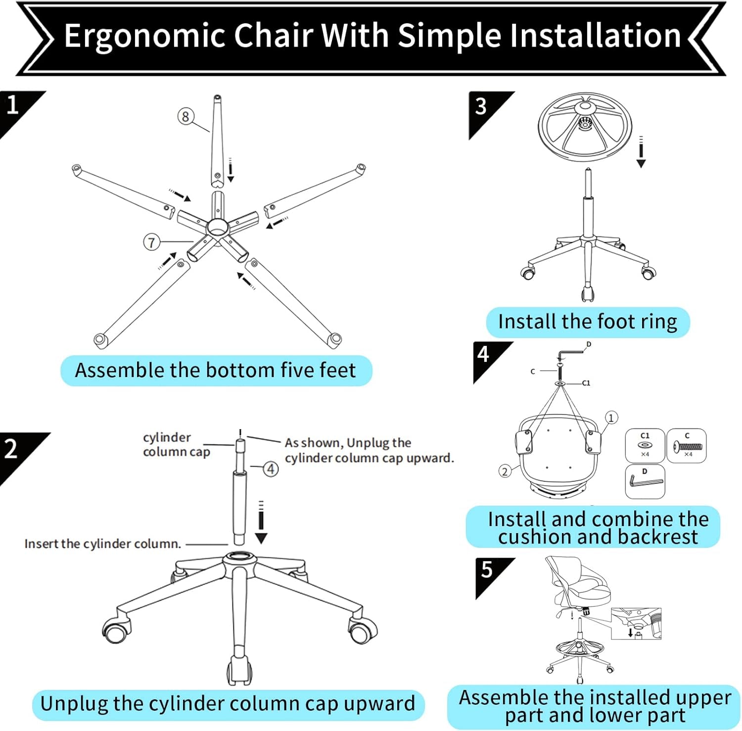 All-day comfort meets chic, space-saving design with our Ergonomic Drafting Chair. Ideal for standing computer desk setups, it delivers steady lumbar support and a plush 3.5-inch seat cushion so you can focus longer, create more, and move with ease while you study, draw, game, or work.