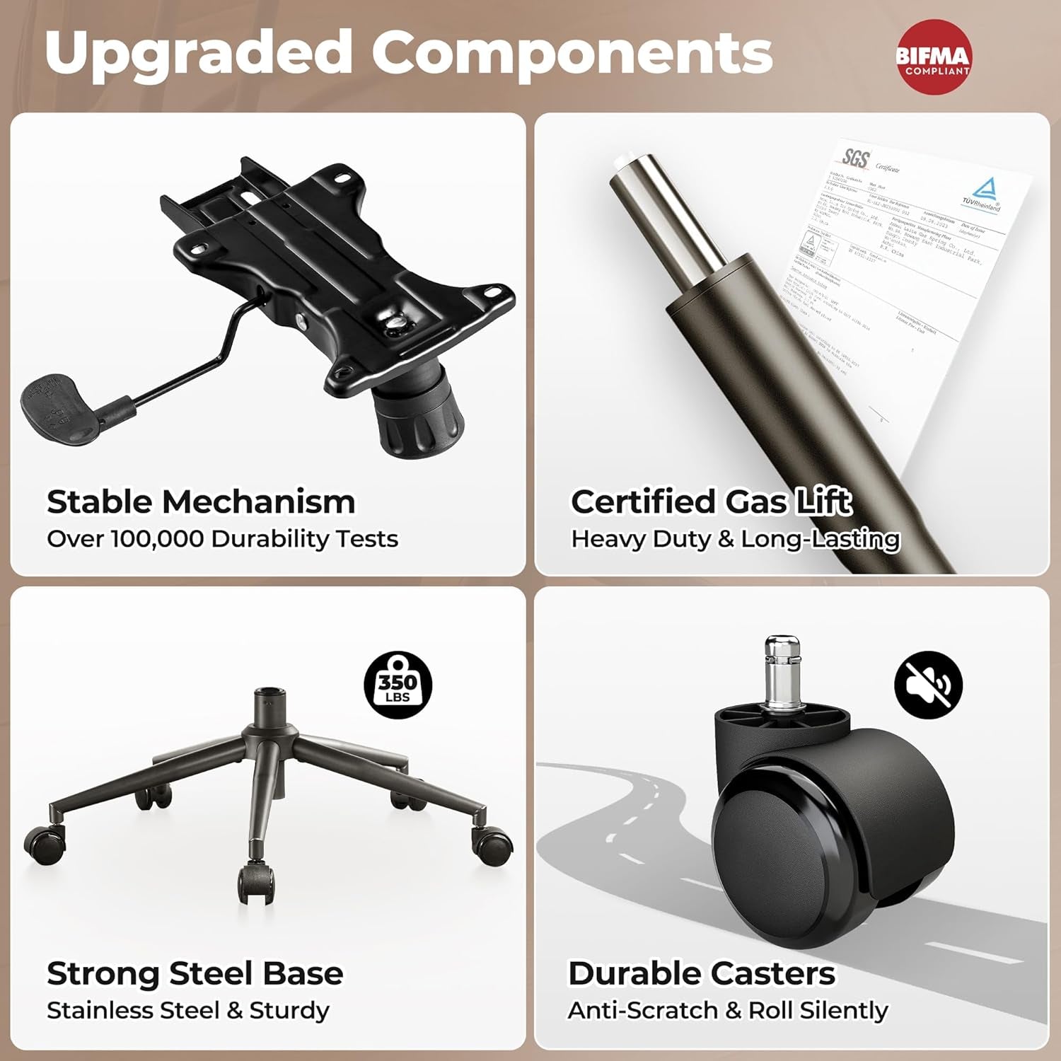 - Durable construction — sturdy metal frame, reliable gas lift, and a 300 lb weight capacity for stable performance.