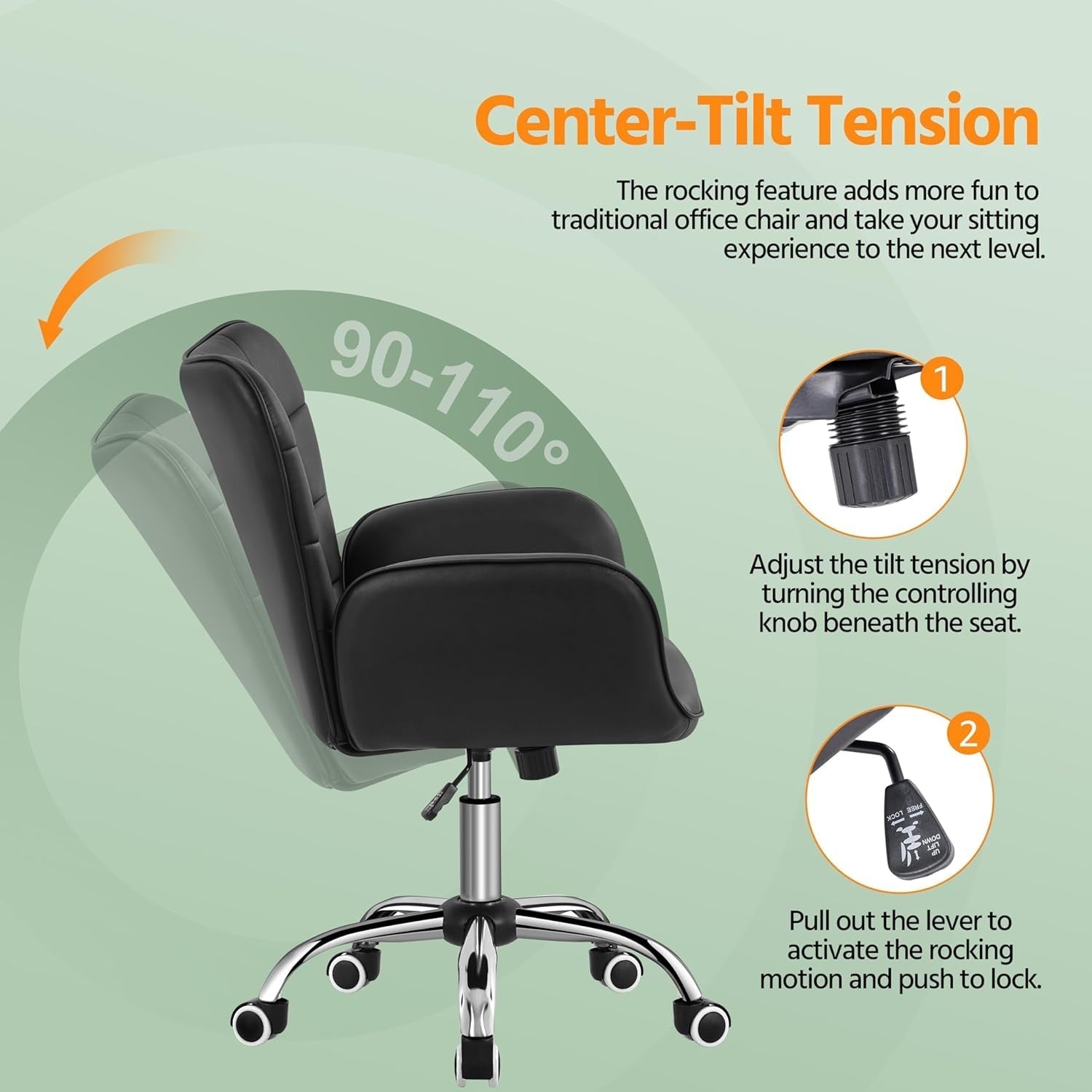 - Ergonomic back support — 14.6" (37 cm) high backrest supports mid-to-lower back to reduce waist strain and fatigue.