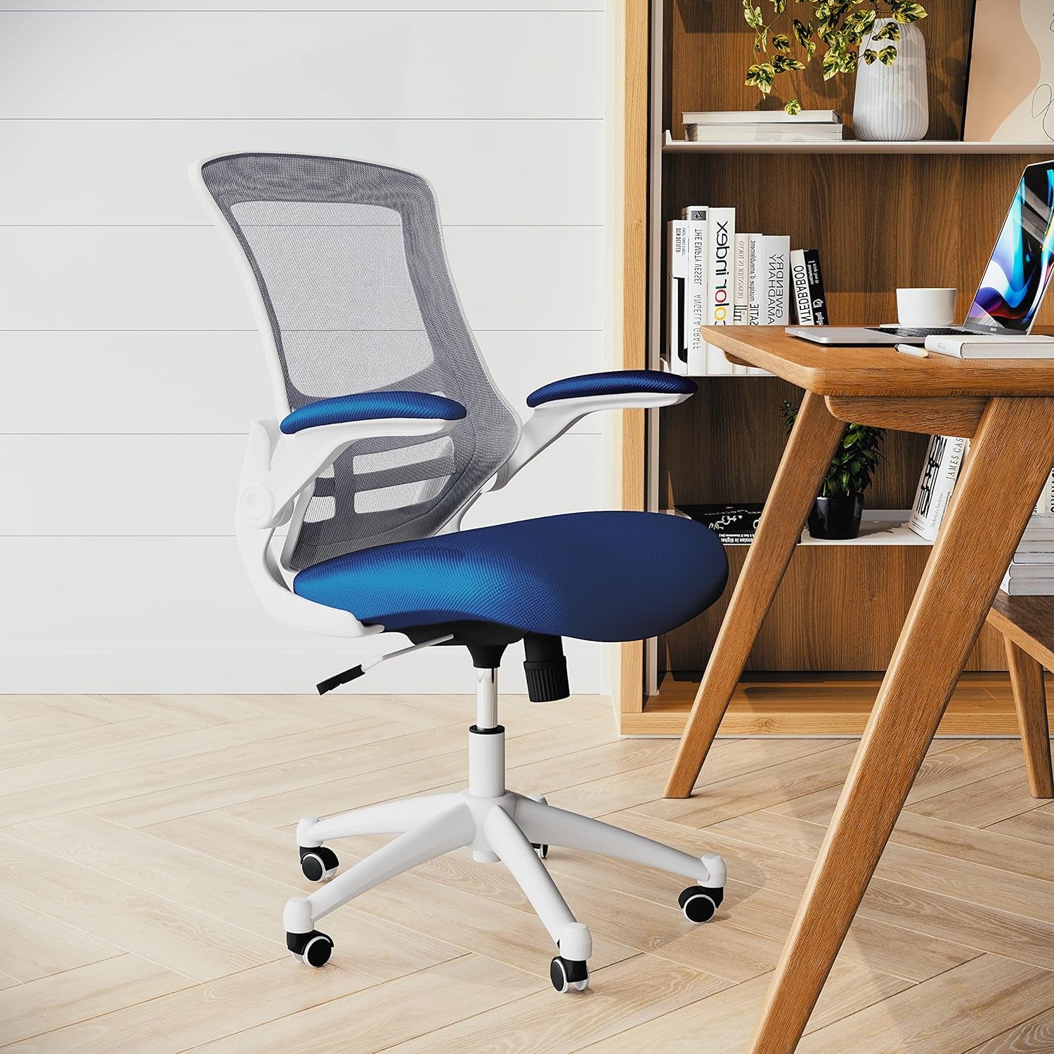 Experience all-day comfort and professional style with the Kelista Ergonomic Office Chair. This mid-back swivel chair with a blue mesh back and white frame blends executive-grade design with responsive support for any workspace—from the front office to a home study.