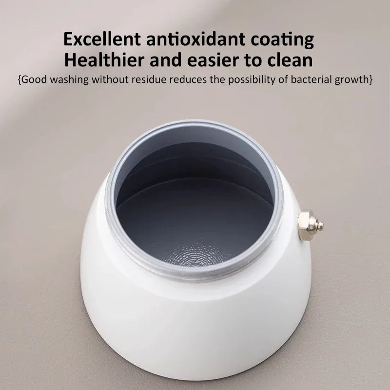 1. Double-valve design: The double-valve Moka pot is equipped with two valves, the pressure value is greater, and the coffee concentration is stronger