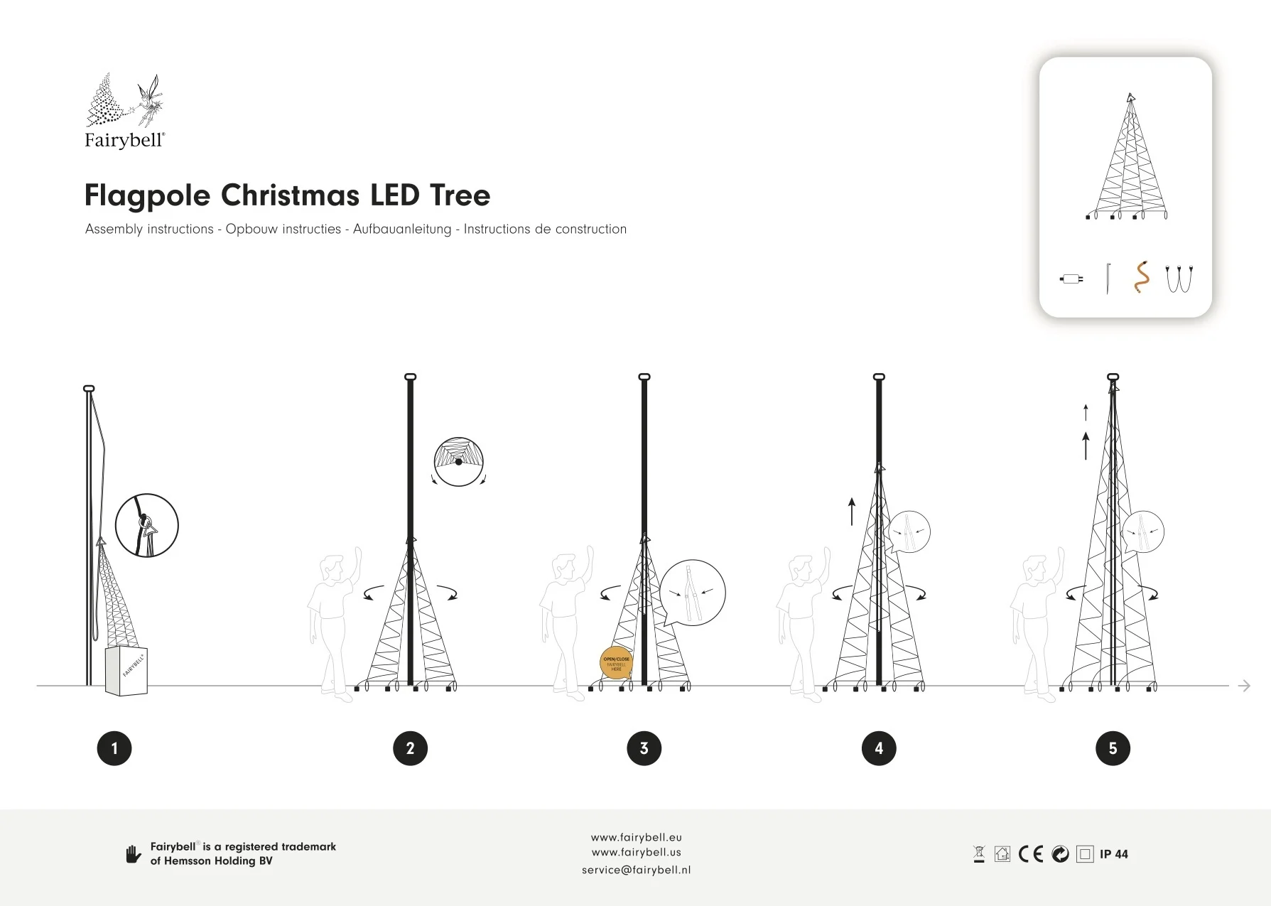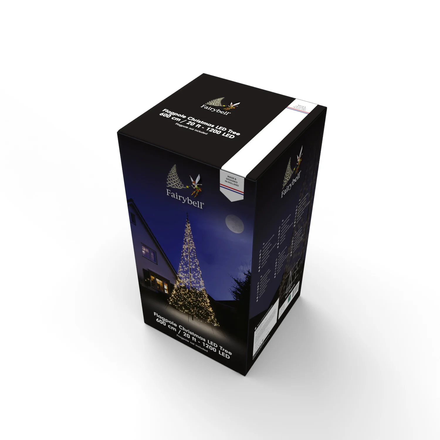 This LED Christmas tree has a height of 20ft, is equipped with 1,200 energy-efficient LED lights, and is specially designed for your flagpole. Thanks to the innovative positioning of the lights and the impressive light effect, a beautiful Christmas tree is created around your flagpole.