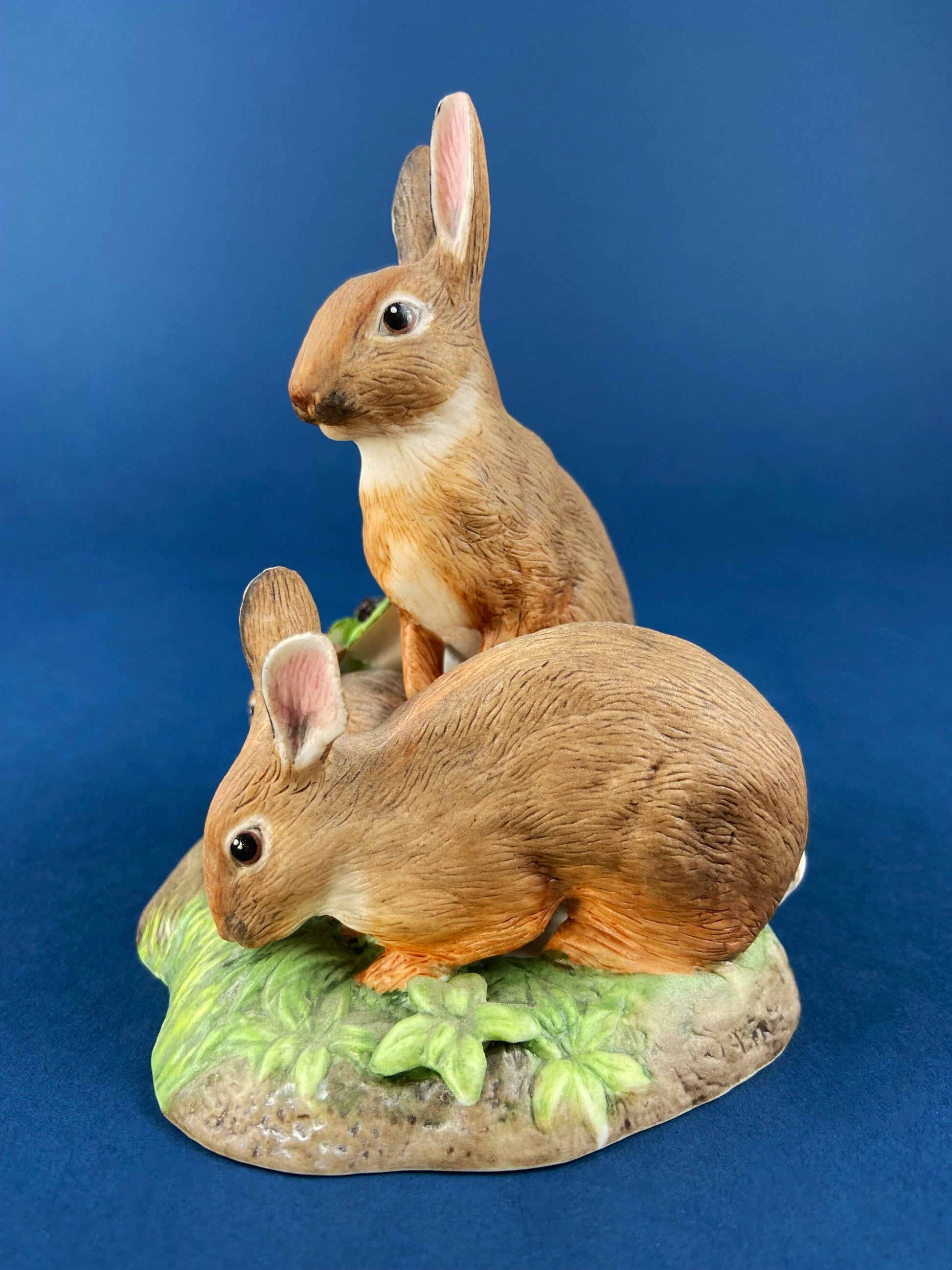 Family of Brown Porcelain Bunnies. Mom Rabbit with Babies. In the Meadow by RW OM. Collectible Figurine. Easter or Spring Celebration. Hand Painted in 1983 , Limited Signature Edition. It is absolutely adorable. Marked by the manufacturer. Great gift for Easter or for rabbits/bunnies collector.