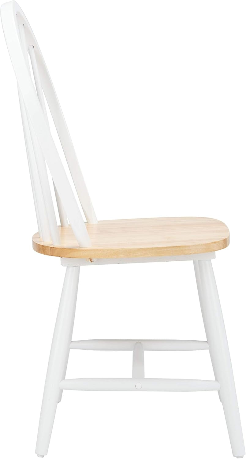 The chairs showcase a classic oval spindle back that evokes Americana elegance, paired with durable rubberwood construction for lasting use. A smooth, solid seat provides comfortable seating for family meals, conversations, and gatherings.