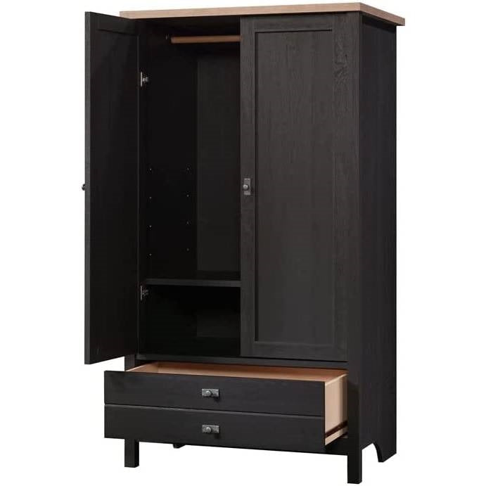FarmHouse Black Oak Drawer and Garment Rod Wardrobe Armoire