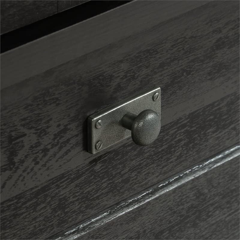 This FarmHouse Black Oak Drawer and Garment Rod Wardrobe Armoire is sleek, stylish, and functional. Behind the 2 large doors of this armoire is a hidden storage area that includes a garment rod and an adjustable shelf. . The adjustable shelf in this wardrobe cabinet can be moved to different heights to create flexible storage for an array of different items. The lower storage drawer opens and closes on smooth metal runners for easy access.
