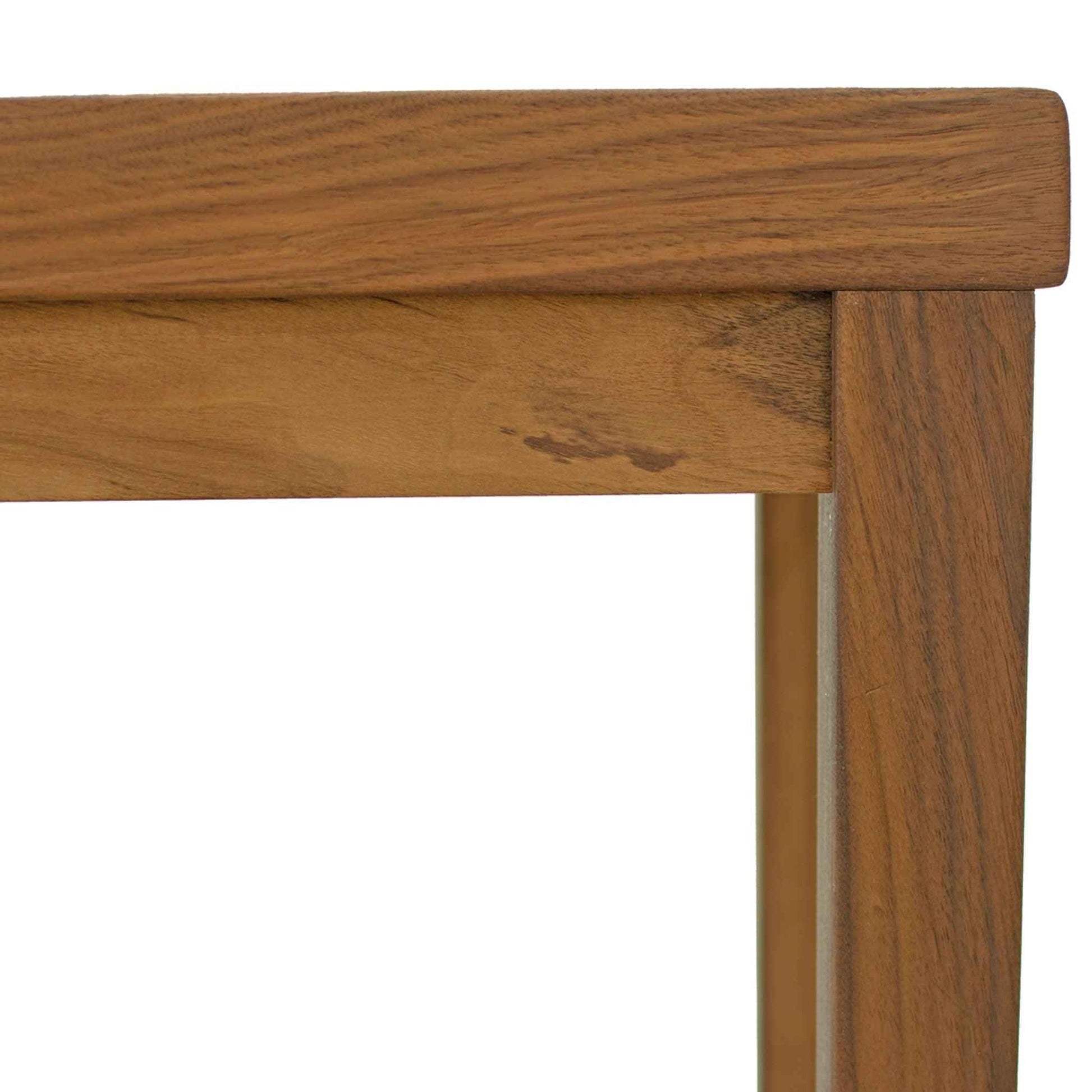 Lee Display adds extra storage space with a bottom drawer shelf. The bottom shelf is cut from the same slab used for the tabletop. Slats are cut to fit seamlessly into the furniture piece.
