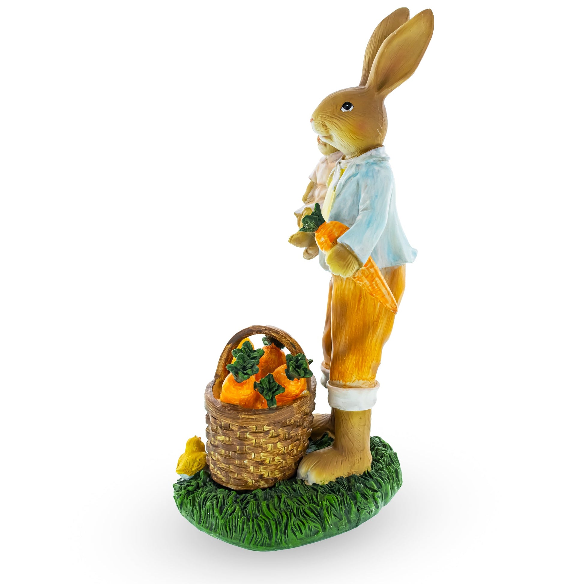 Father & Child Easter Bunny Figurine – Spring Rabbit Statue with Carrots & Chicks 11 Inches